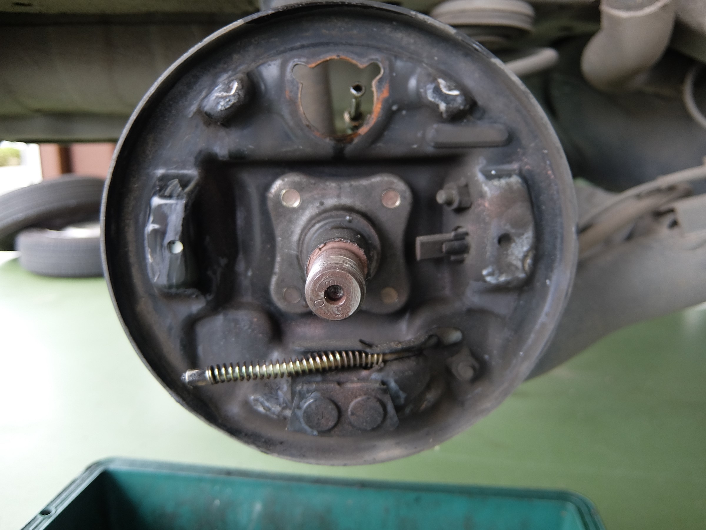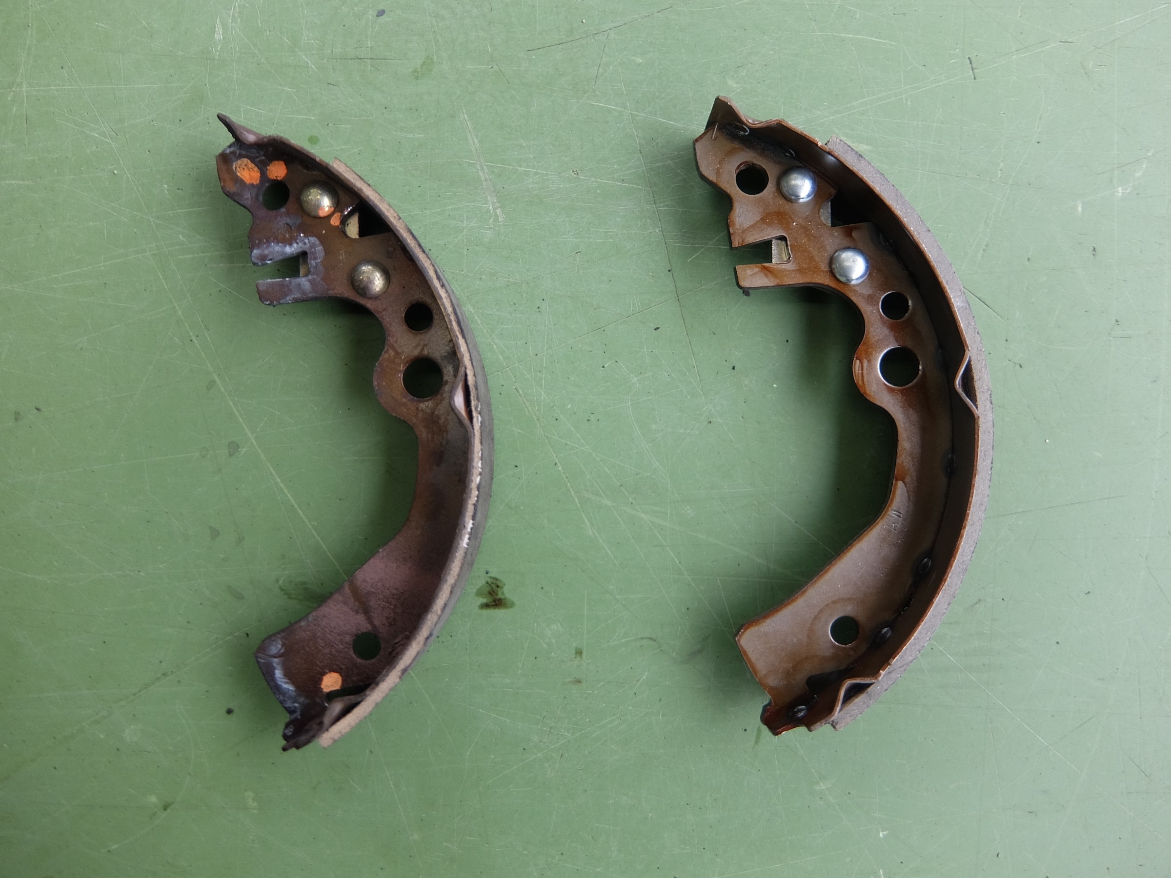後ろ側はブレーキシューが付いています。※後ろもブレーキパッドのお車もあります。