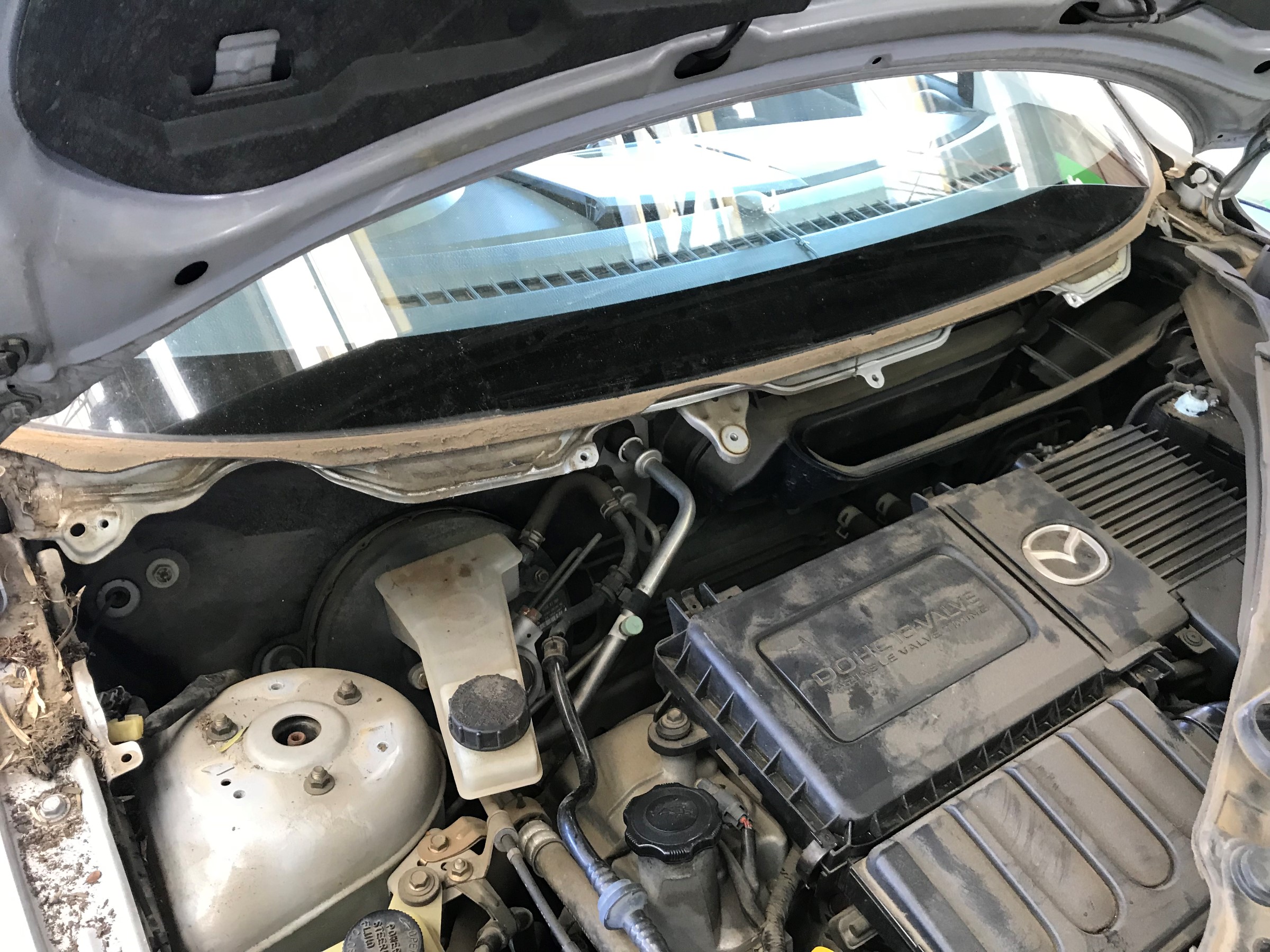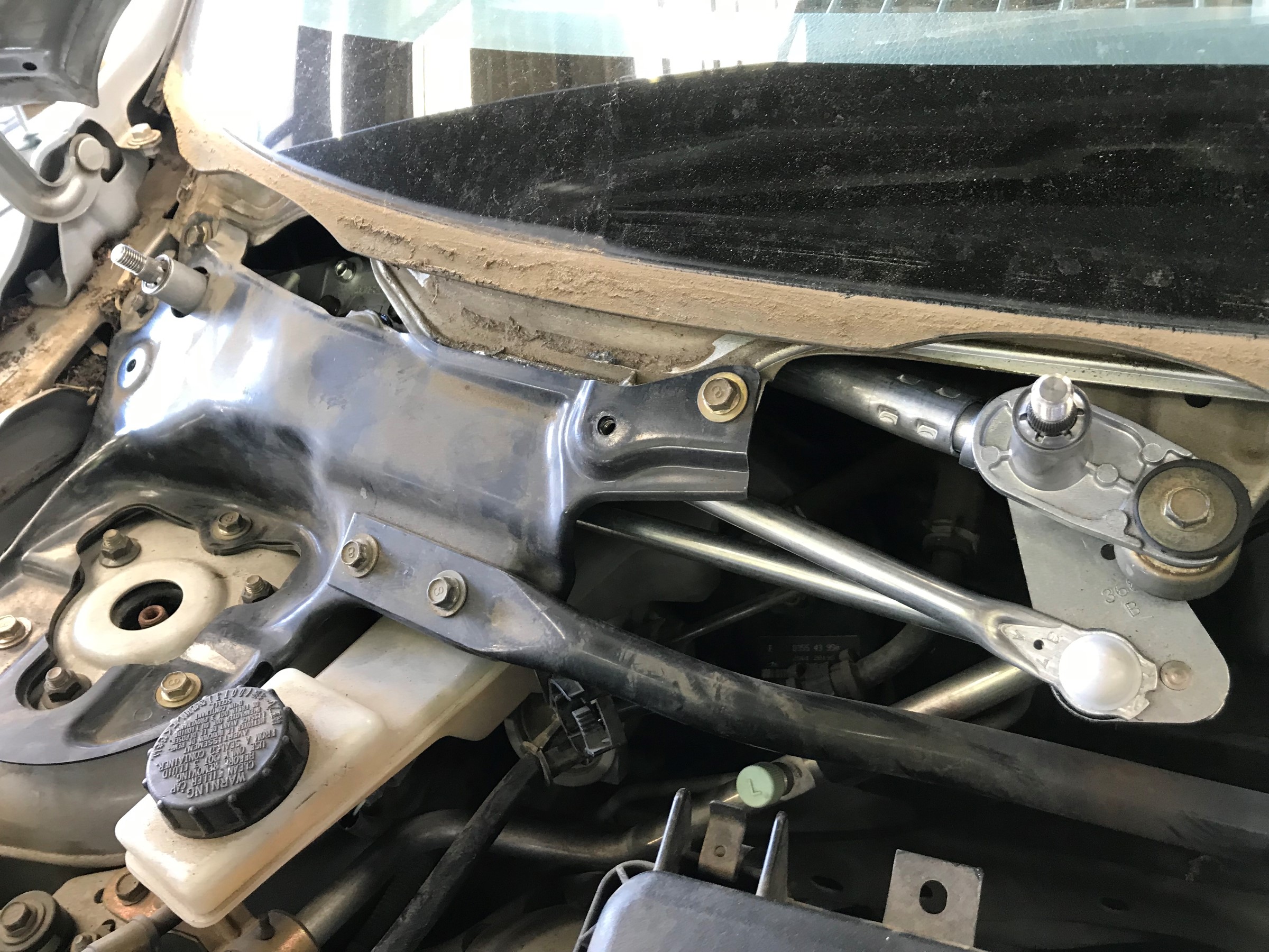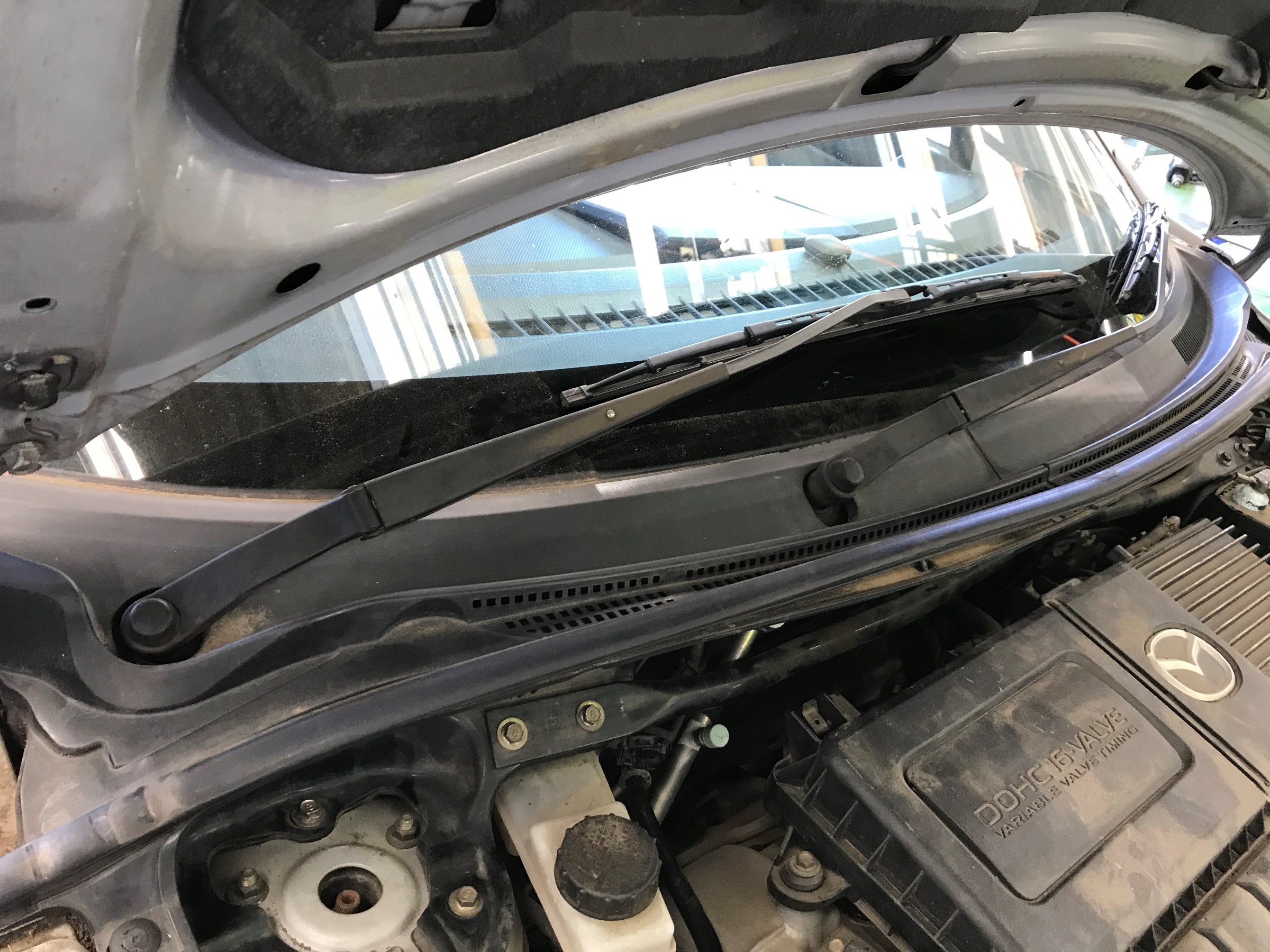 ↑ワイパー廻りをごっそり外した状態。