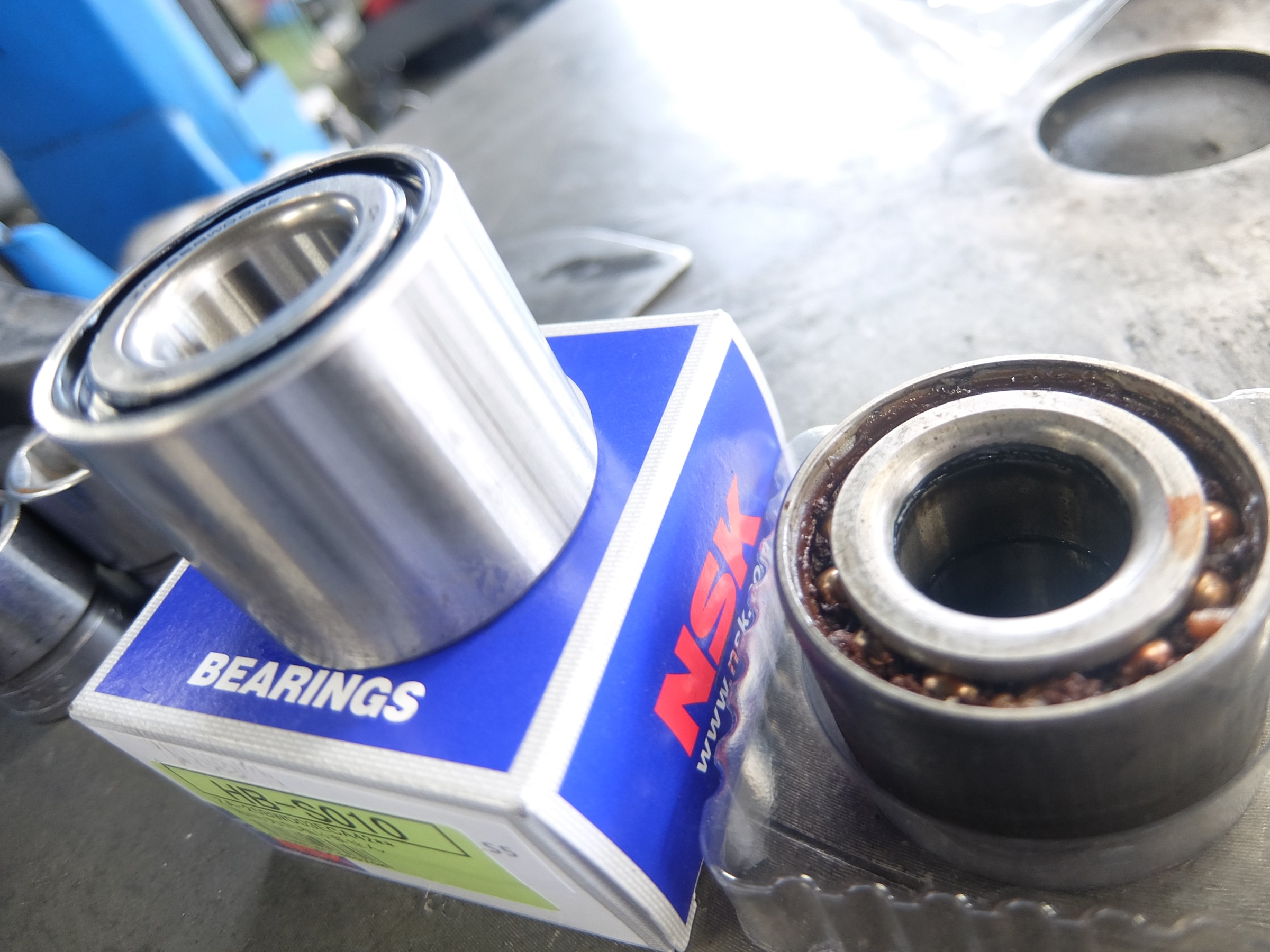 このベアリング、そうそう劣化するものではありませんが、一部軽自動車の後輪では消耗して異音が発生するケースがあります。