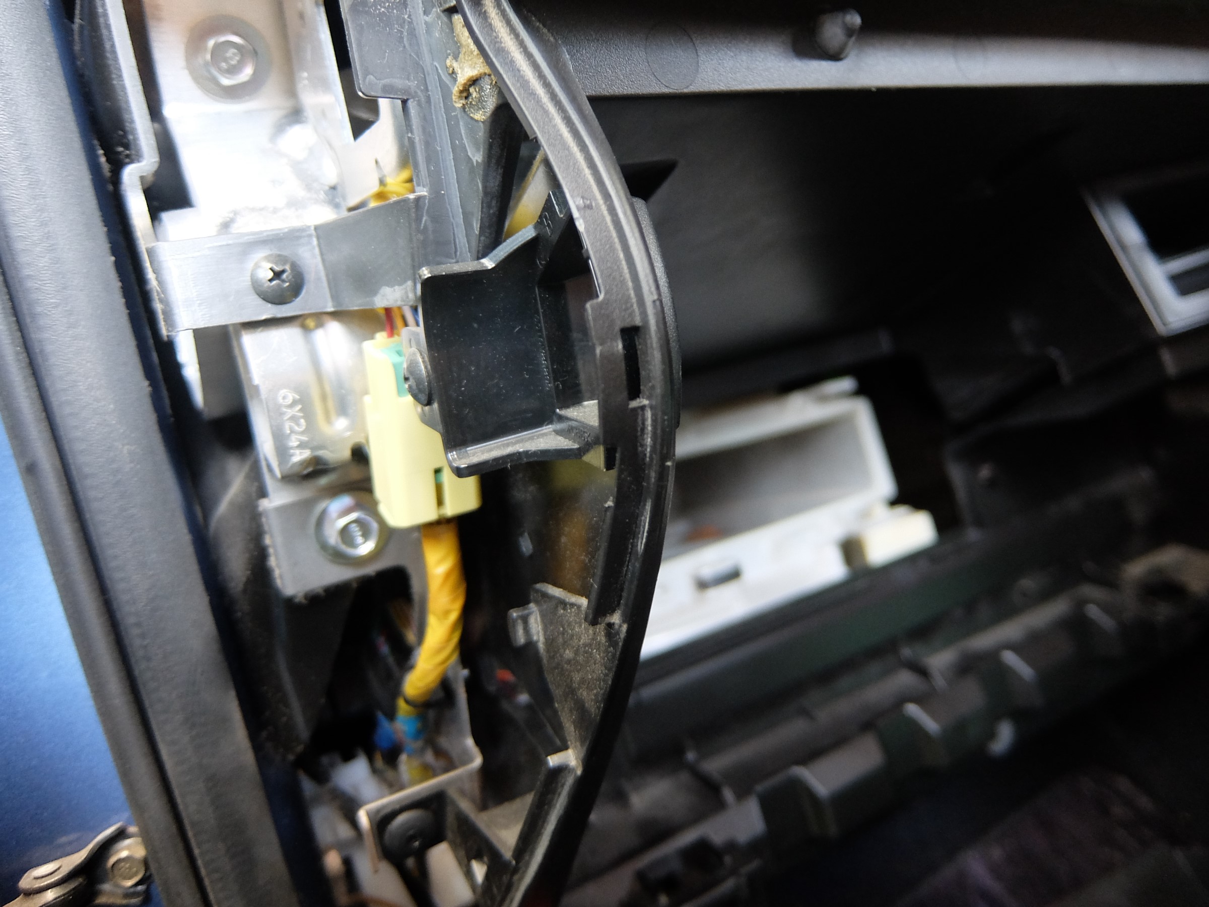 爪が3カ所あるので折らないよう慎重に外します。奥の白いところにエアコンフィルターが入っています。