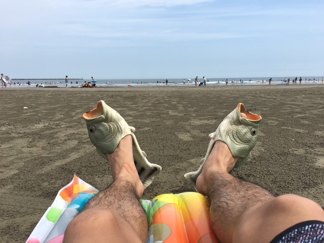 そしてみて下さい、このビーチサンダル!かなり精巧な作りでブラックバスが再現されています。砂浜を歩くとバスの口から砂がボフっと出てきて可愛いんです。これは栃木に旅行にいった時に一目惚れして買ったのですが、とても良い買い物をしたなぁと思います。この夏は愛用します!