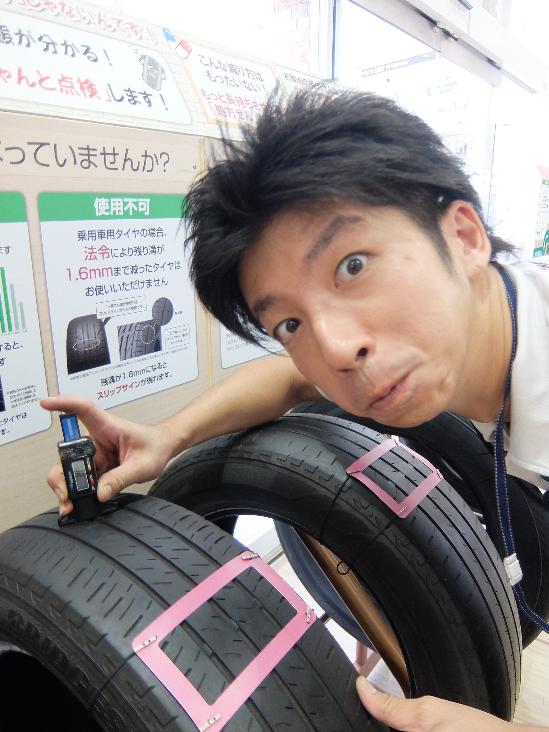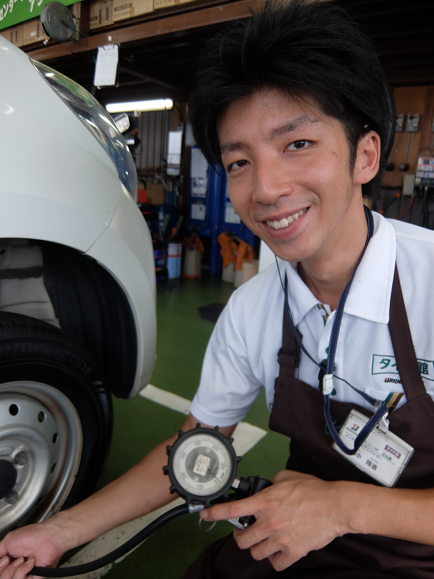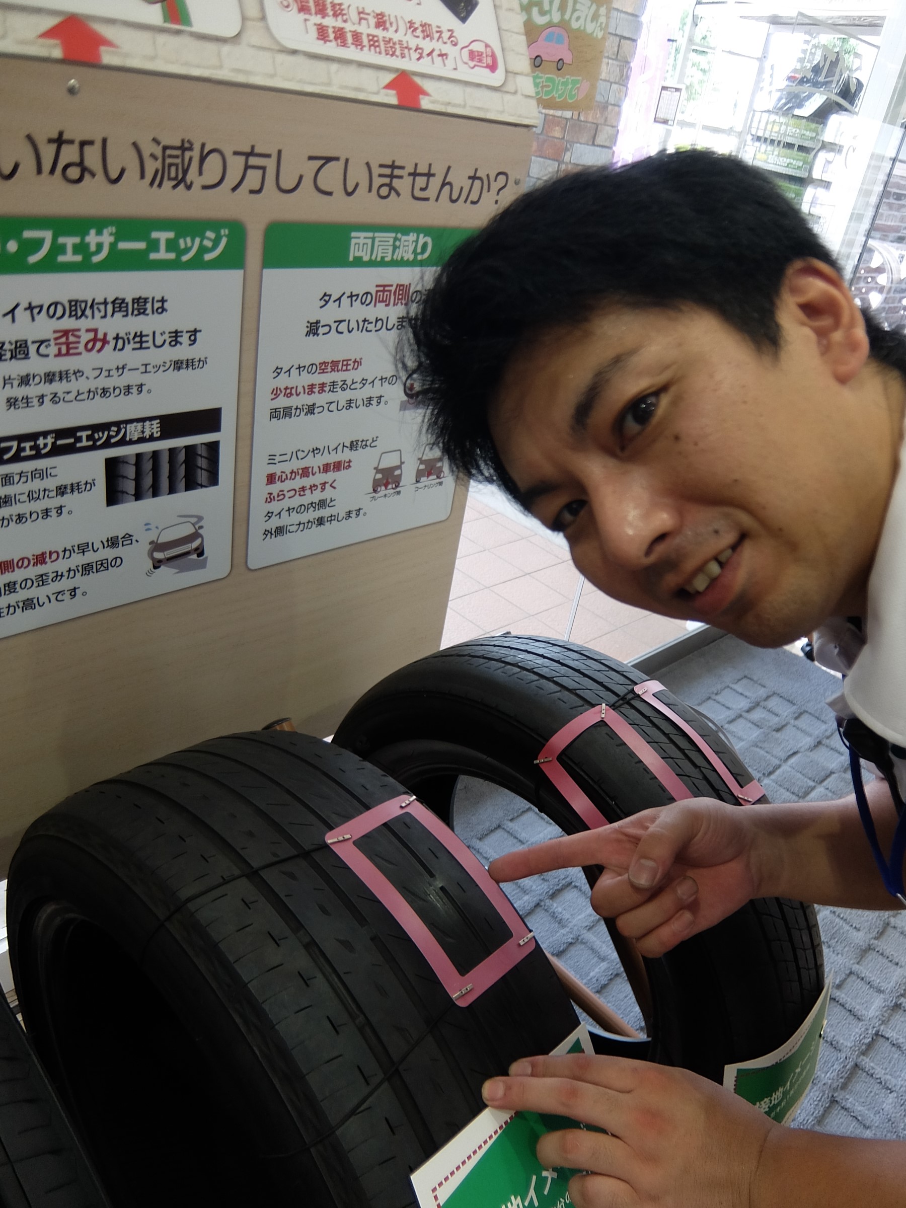 タイヤ館では、タイヤも摩耗状態も外側だけではなく内側までしっかりと点検しています。