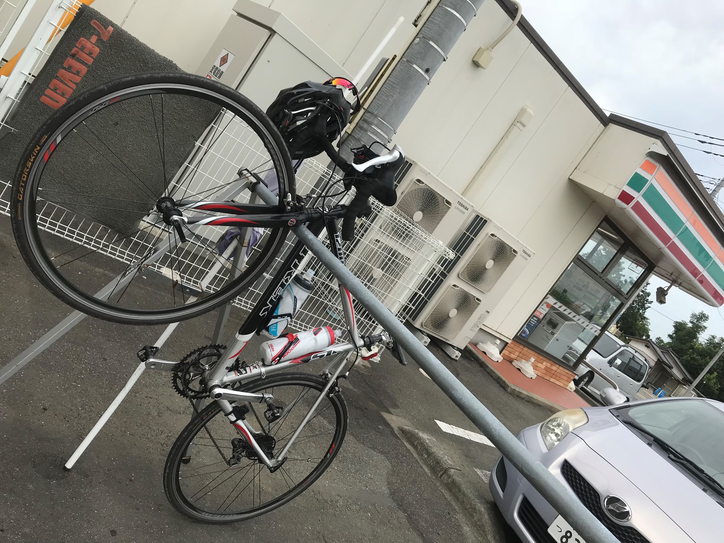 近くのコンビニで休憩。サイクリングラックがあるのは嬉しいです。