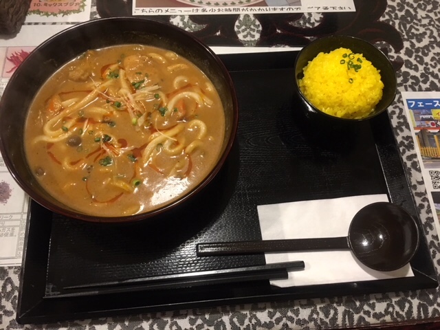 やはりインドカレー特有のスパイシーなスープなのですが、意外とうどんに良く合います。