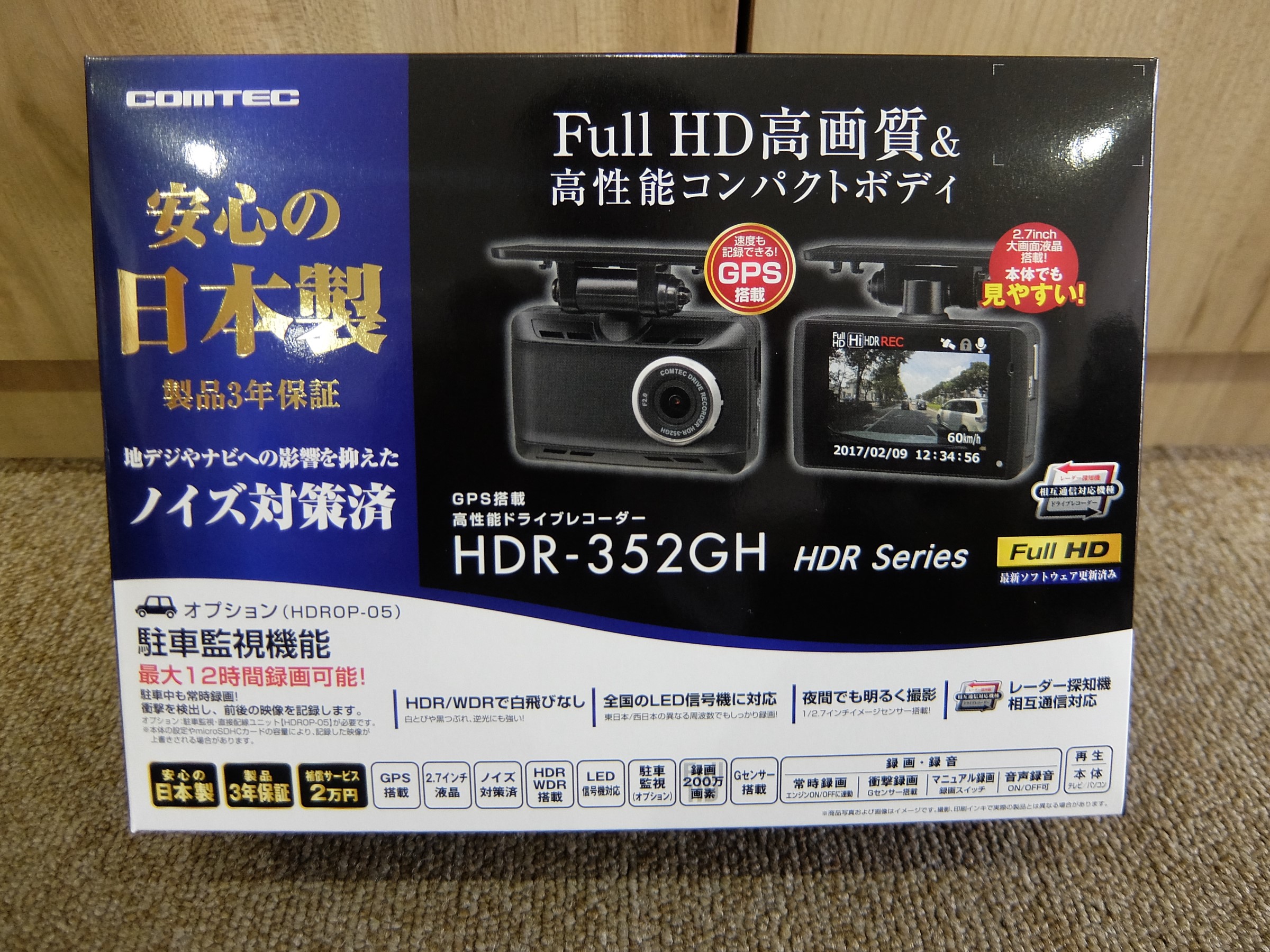 取り付けをお任せいただいたドライブレコーダーはこちら、コムテックのHDR-352GHです。