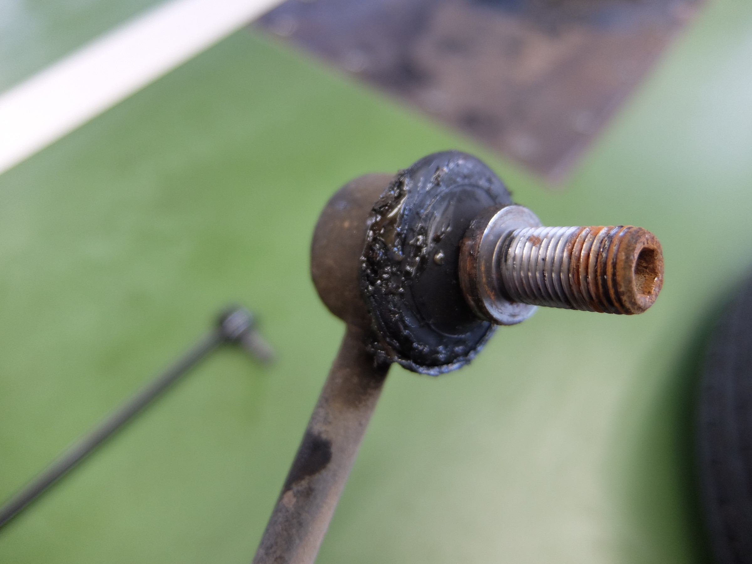 ブーツが破れているのに加えて、ボルト部分も錆びつきが酷いです。このまま放置していれば、最悪の場合は固着してしまって交換不可になっていた可能性もあります。