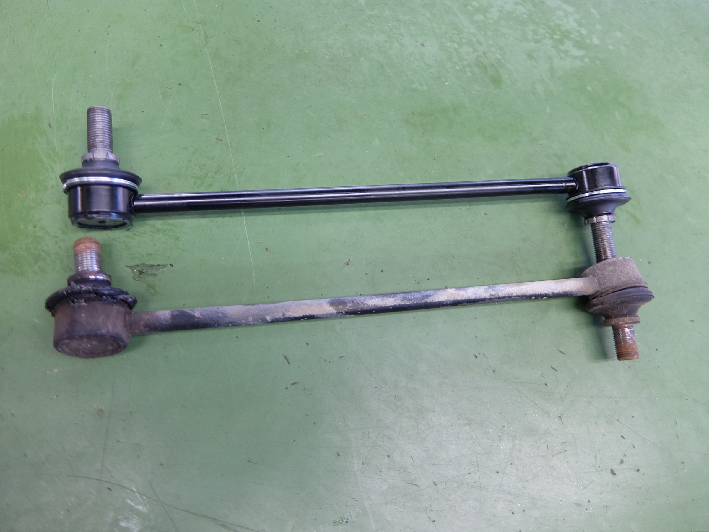 新品と比較するとその差は一目瞭然です。普段は目立たない地味なパーツですが、車体を安定させるという大切な役割を担っているスタビライザーリンクです。