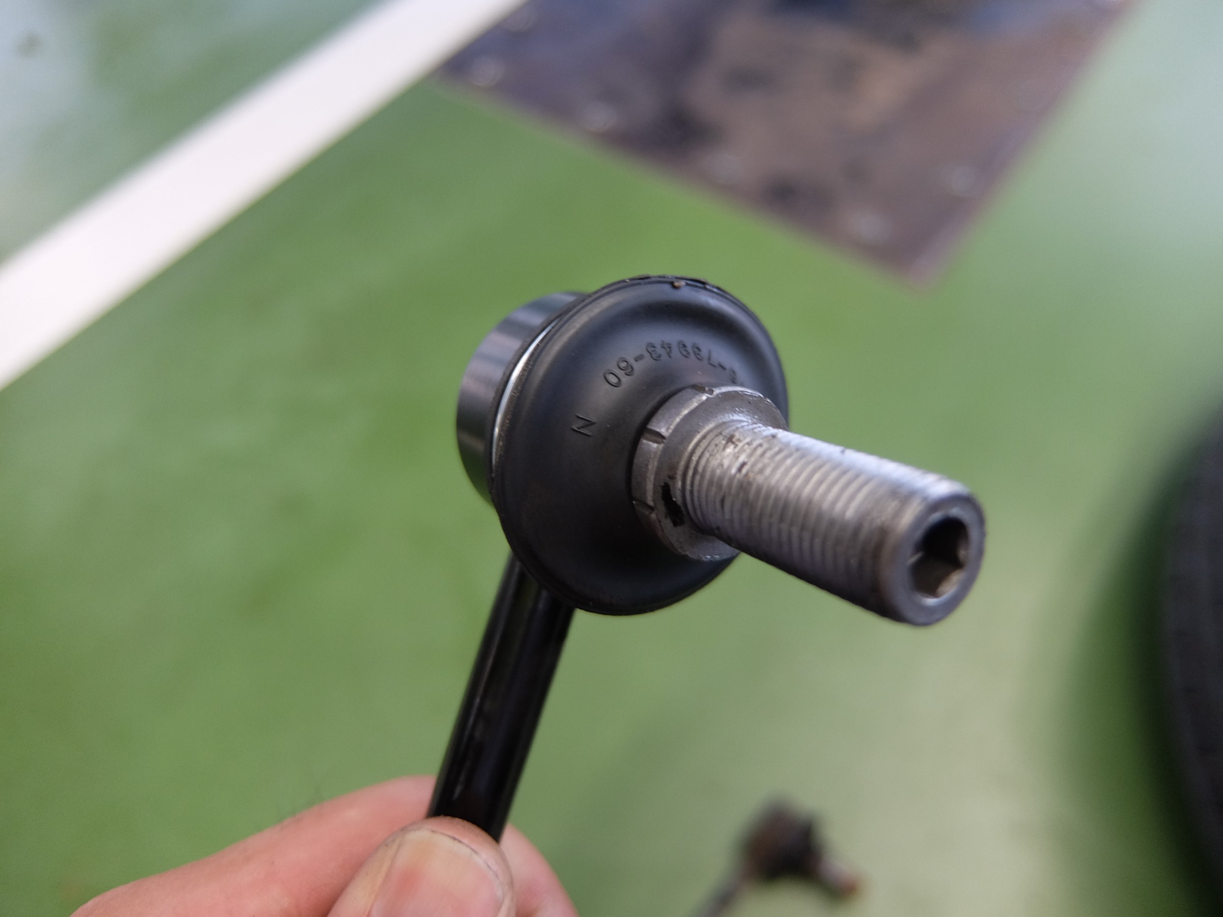 正直に言ってしまうと、このパーツがなくても車は走ることはできます。しかし今回はこのスタビライザーリンクの関節部分を保護するブーツが破れて、中のグリースが漏れ出していたので、安全走行のために交換させていただきました。