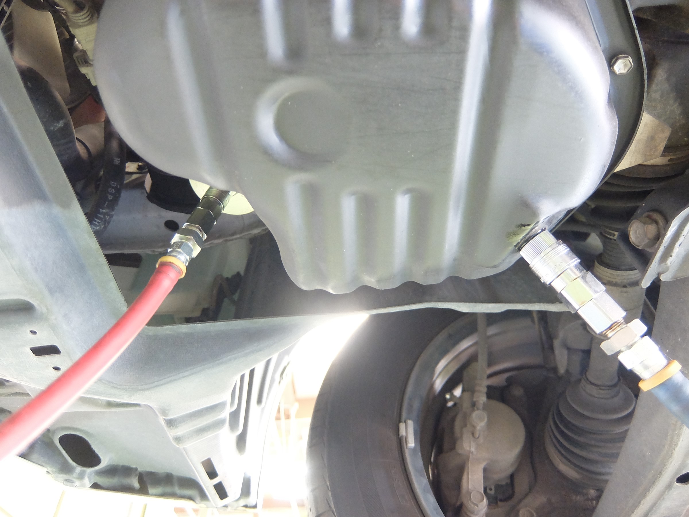 実施方法は、オイルをいつものように抜いてからドレンボルトとオイルフィルターに専用のホースを接続すれば準備完了です!