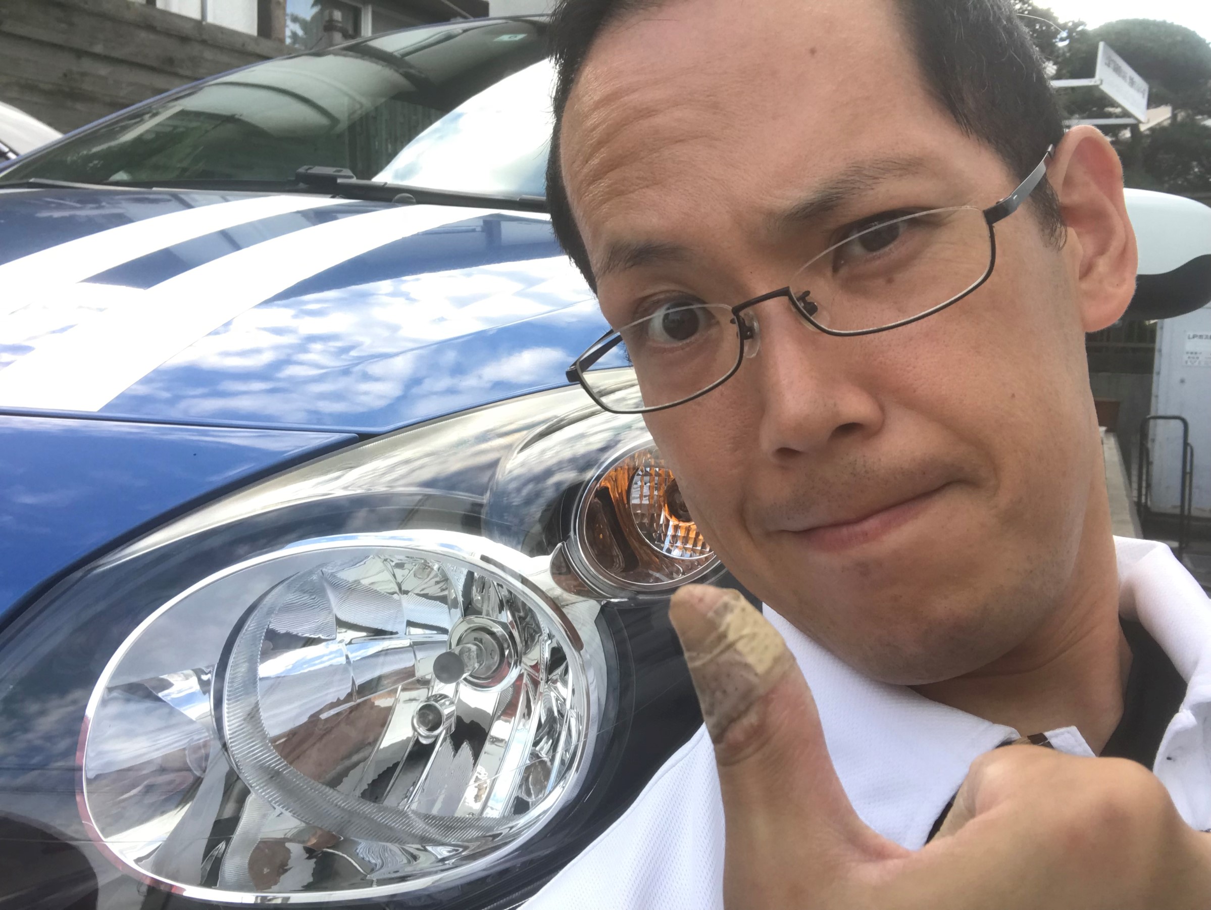 「ズッ友だよ!」とばかりに愛車のトゥインゴと自撮りをする私。