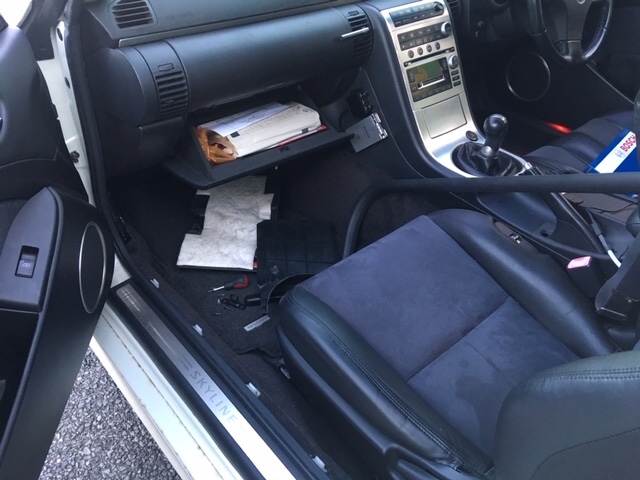 スカイラインクーペも例外ではありません。助手席の足元奥にあるパネルとサイドのパネル、グローブボックスを留めているネジ6箇所を外すと、グローブボックス本体が外れます。その奥にある白い部分にエアコンフィルターが装着されています。