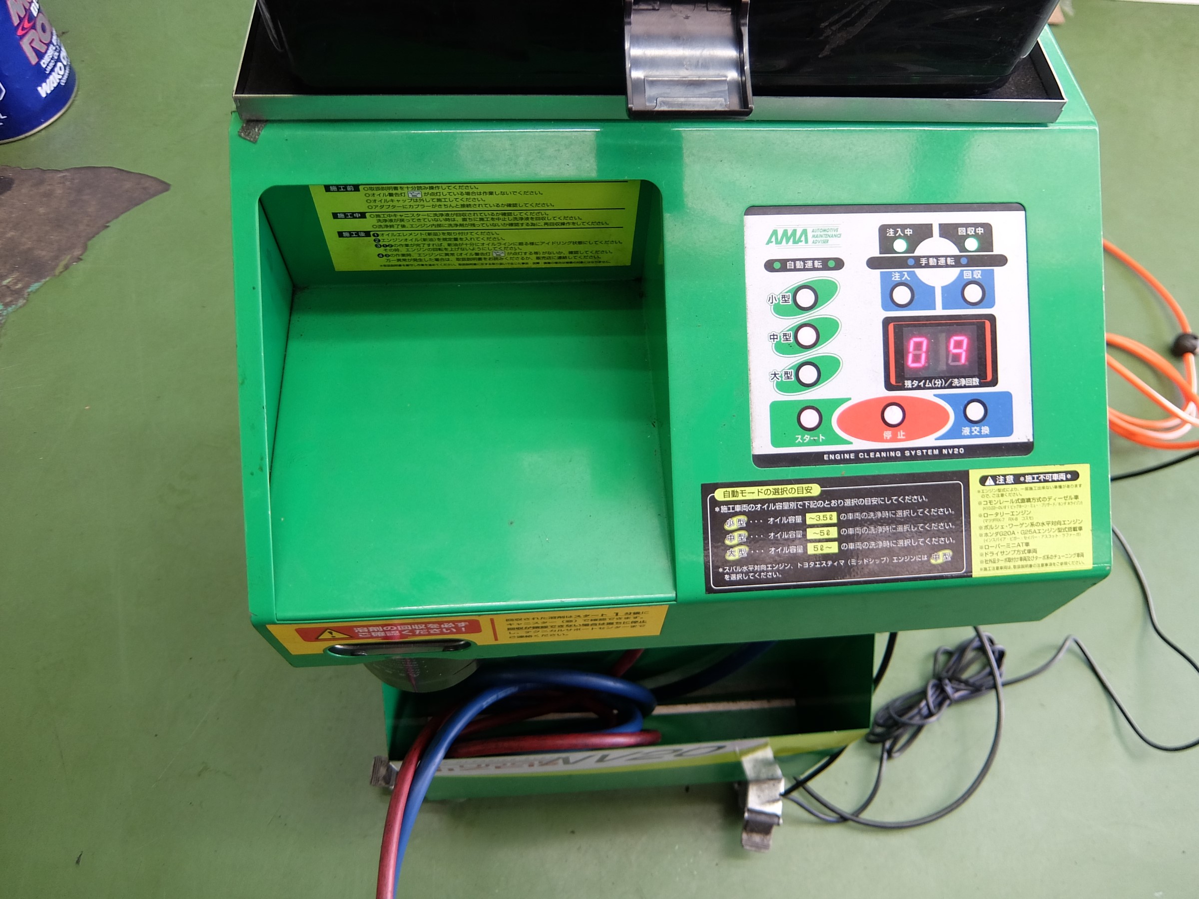 作業方法としては、ドレンボルトとオイルエレメントに専用のホースをつなぎ、開始のボタンを押せば後は機械が自動で洗浄してくれます。
