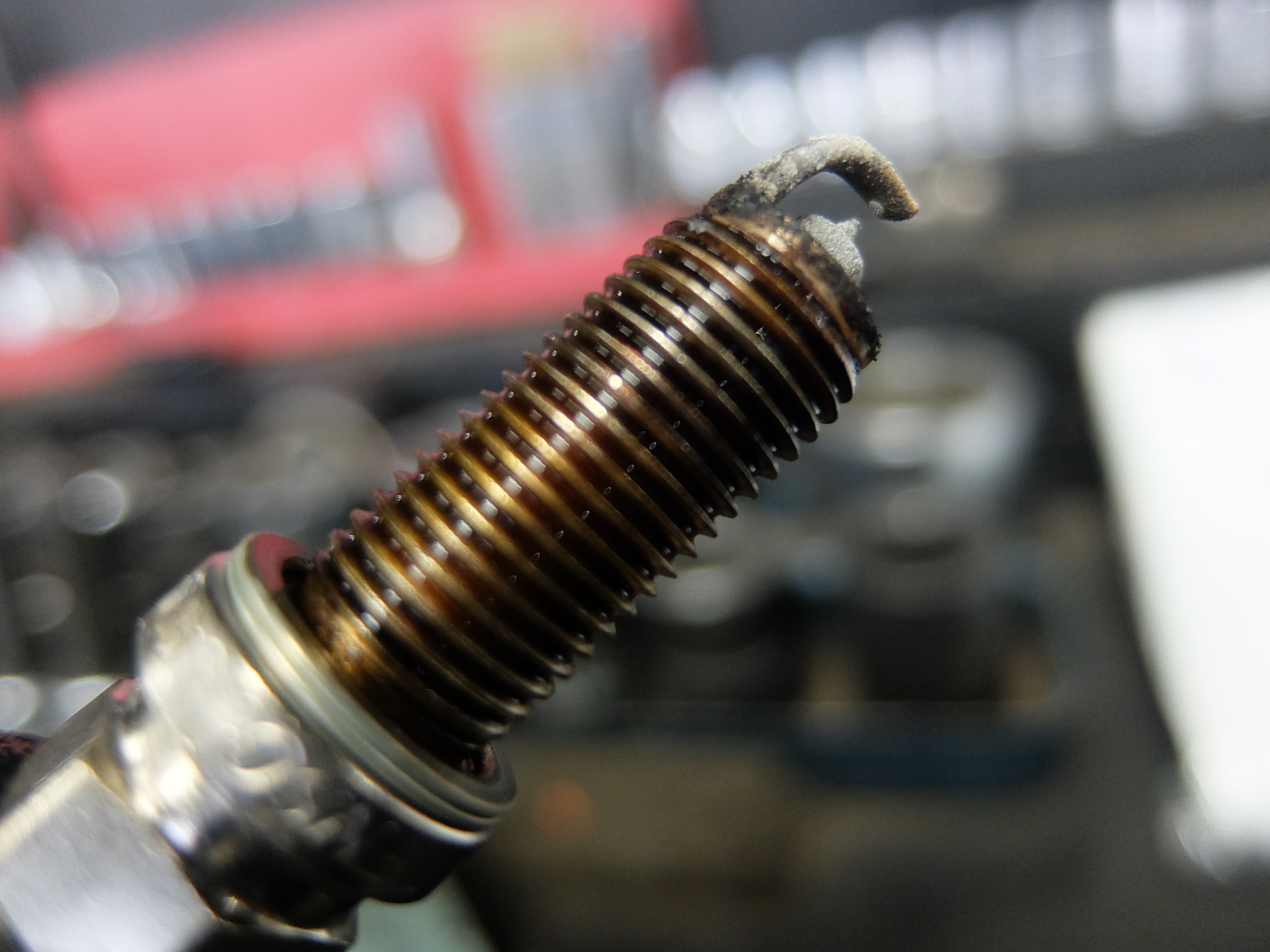 スパークプラグを外して見ると、だいぶ電極が消費していました!