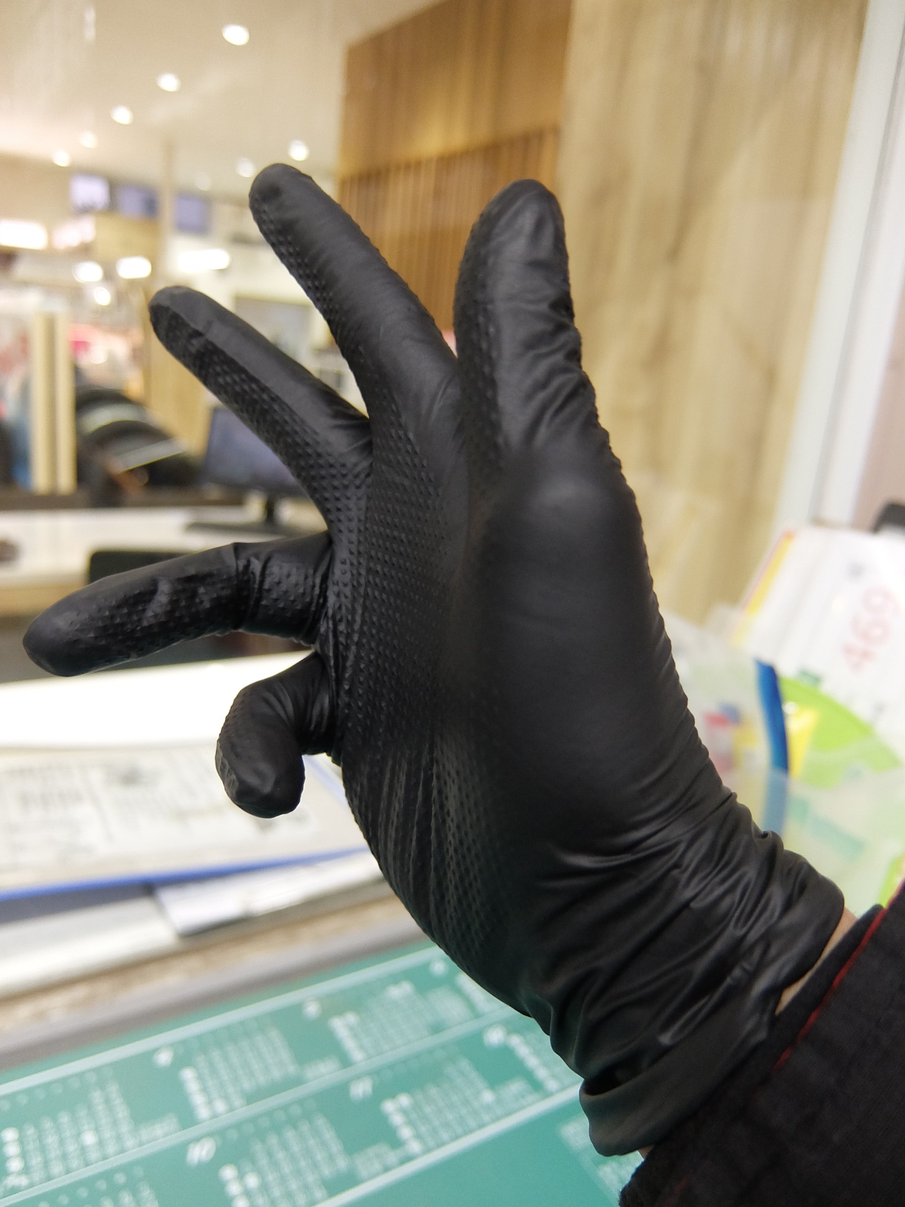 私の右手には黒龍が宿っており、普段はそれを封じるために「忌呪帯法(いじゅたいほう)」ならぬ「ニトリルグローブ」をはめています。