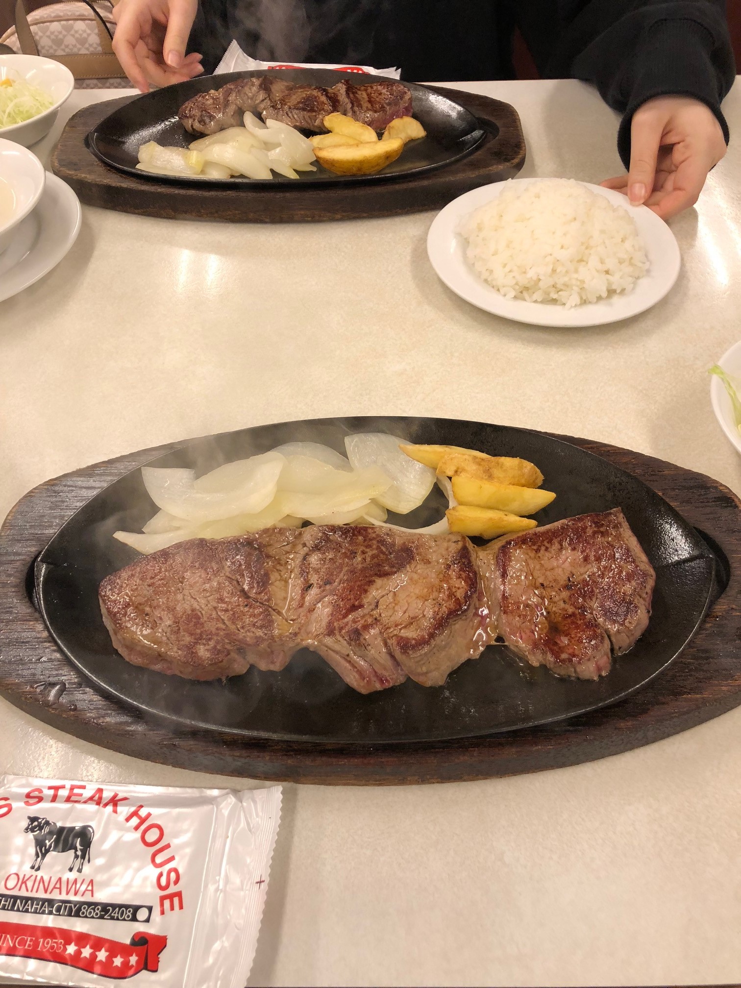 いつもは、沖縄料理を食べますが今回はステーキを食べてきました(T_T)