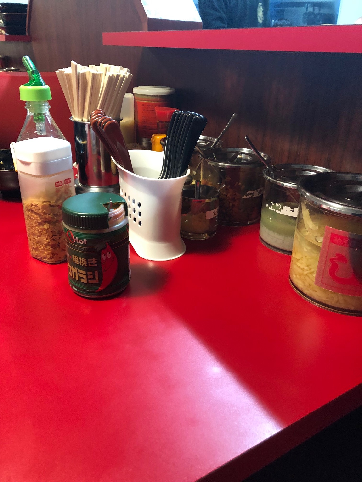 テーブルの上には、たくさんの薬味があるので自分好みの味に出来ますよ!!