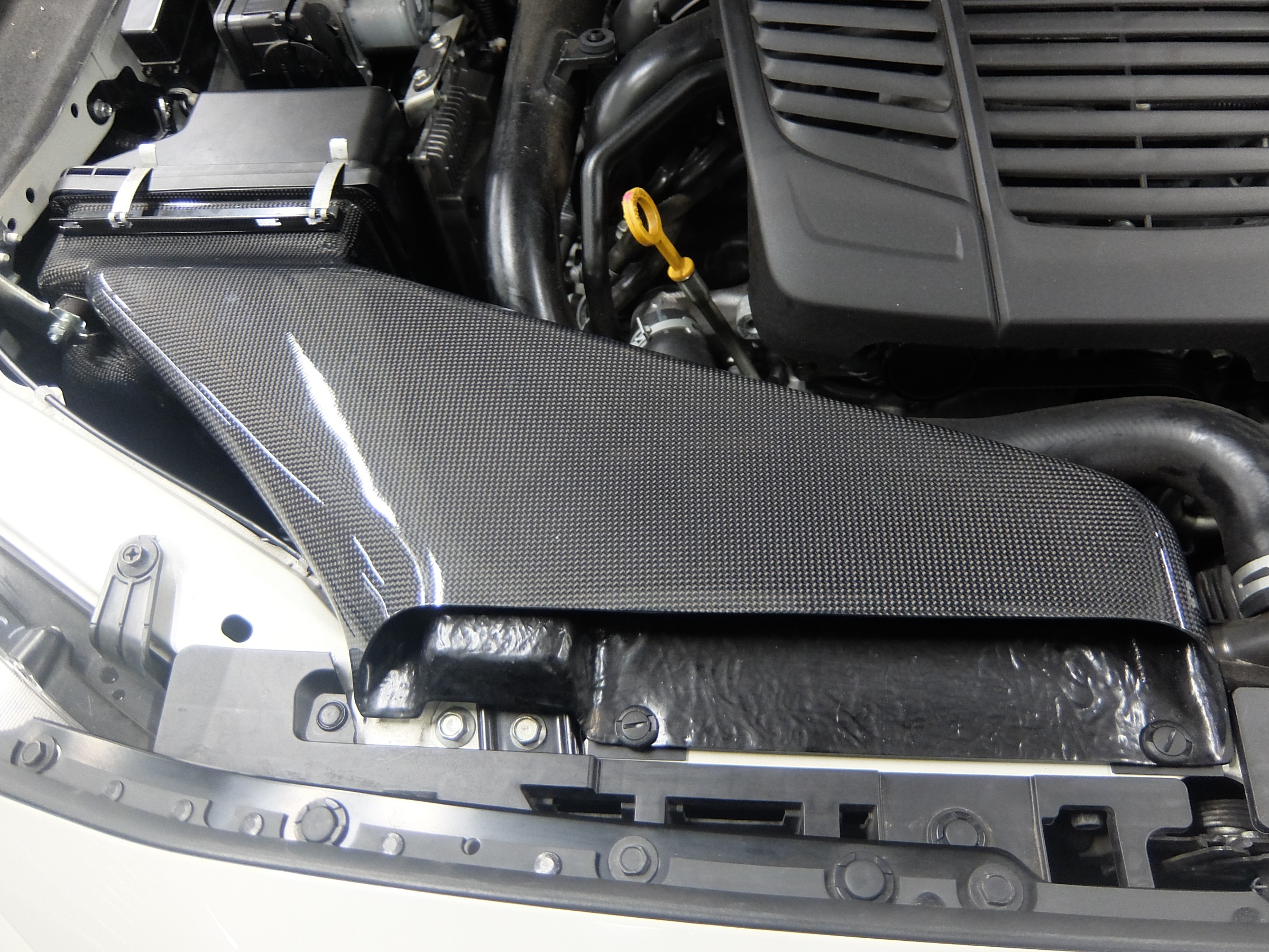 強度と軽量化を両立すると共に、エンジンルーム内のアクセントとして、視覚的効果もあります。サイズはかなり大きいので、エンジンルームを開けた瞬間にすぐに気付きます☆