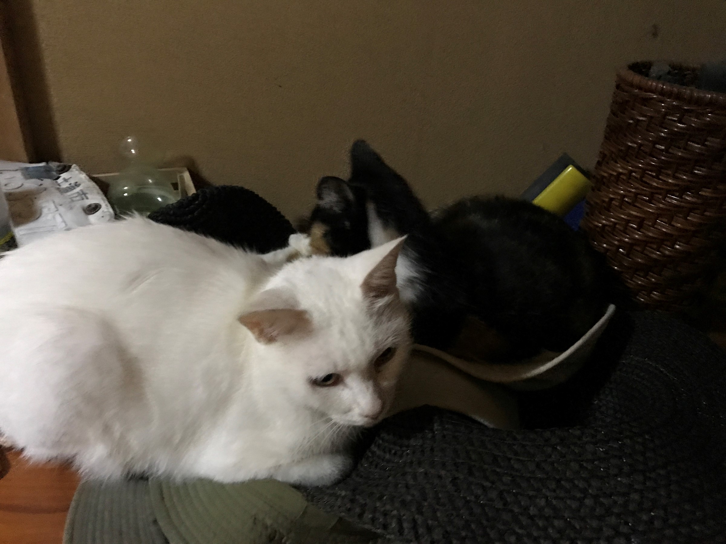 親猫はコイツ。左の白いネコが親猫です。