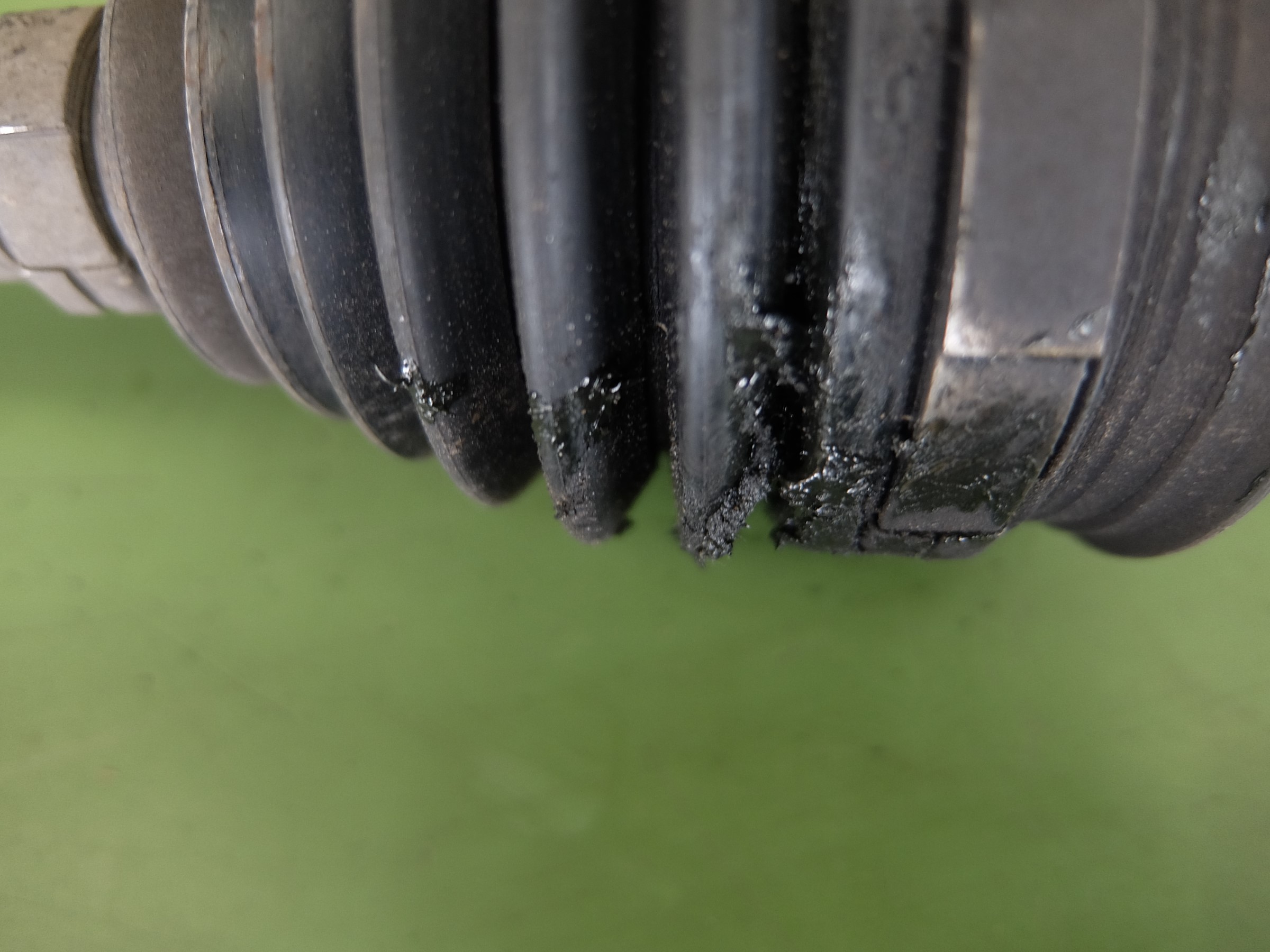 ↑ご覧の様に、ゴム部分が劣化により破れてしまい、内部のグリースが漏れ出てしまっています。