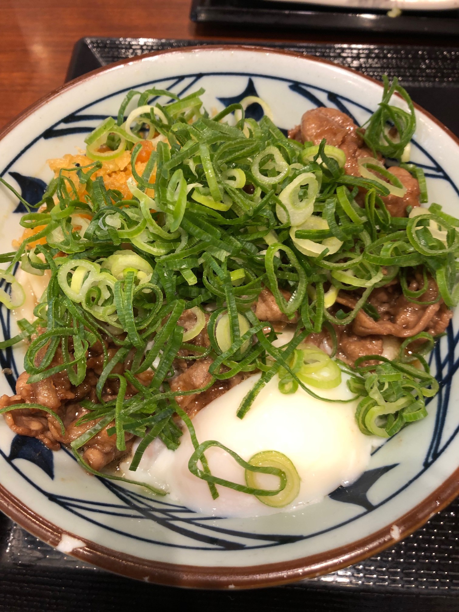 食べたメニューは、期間限定牛とろうどんと天ぷらです~(´▽`)