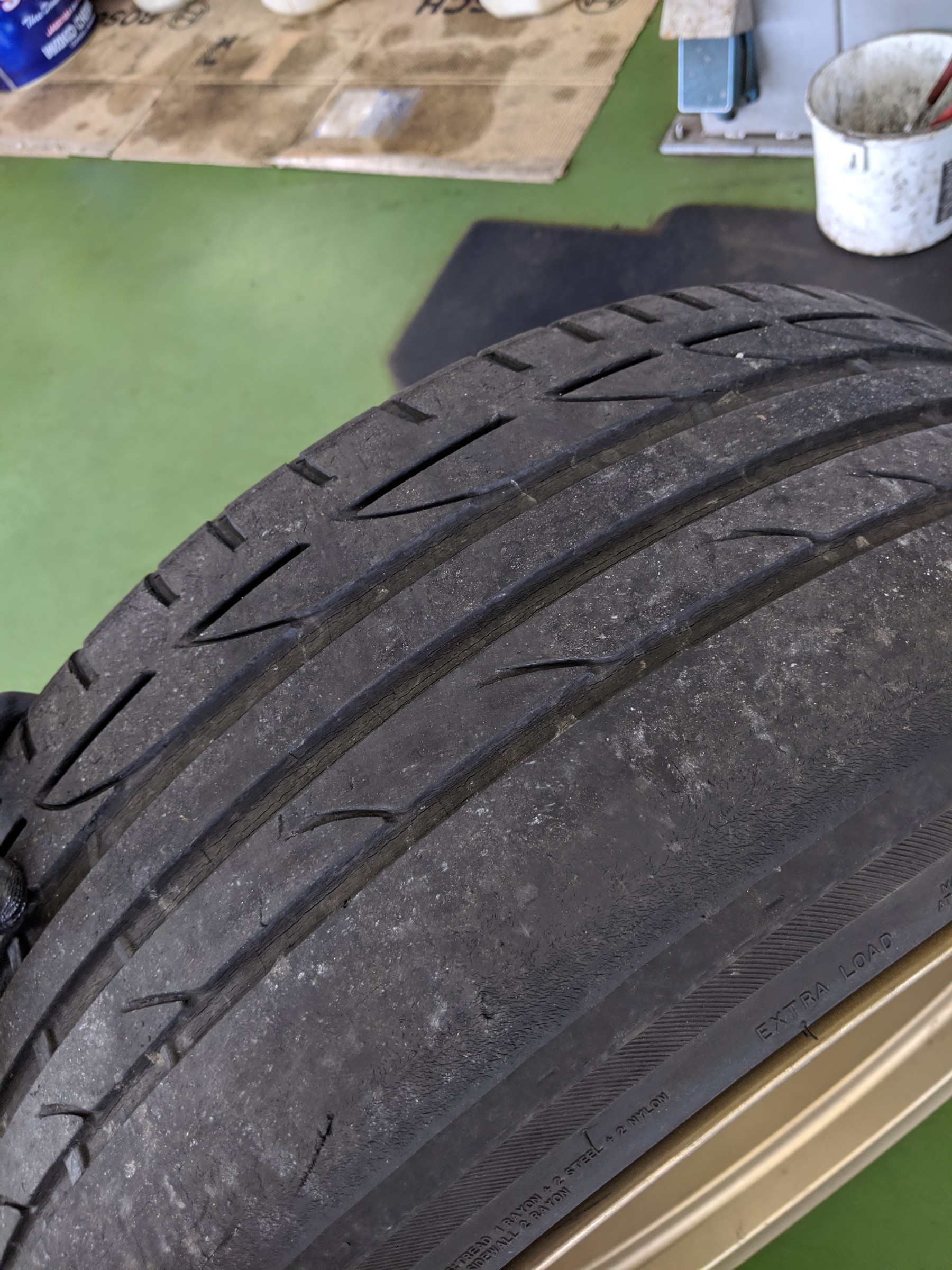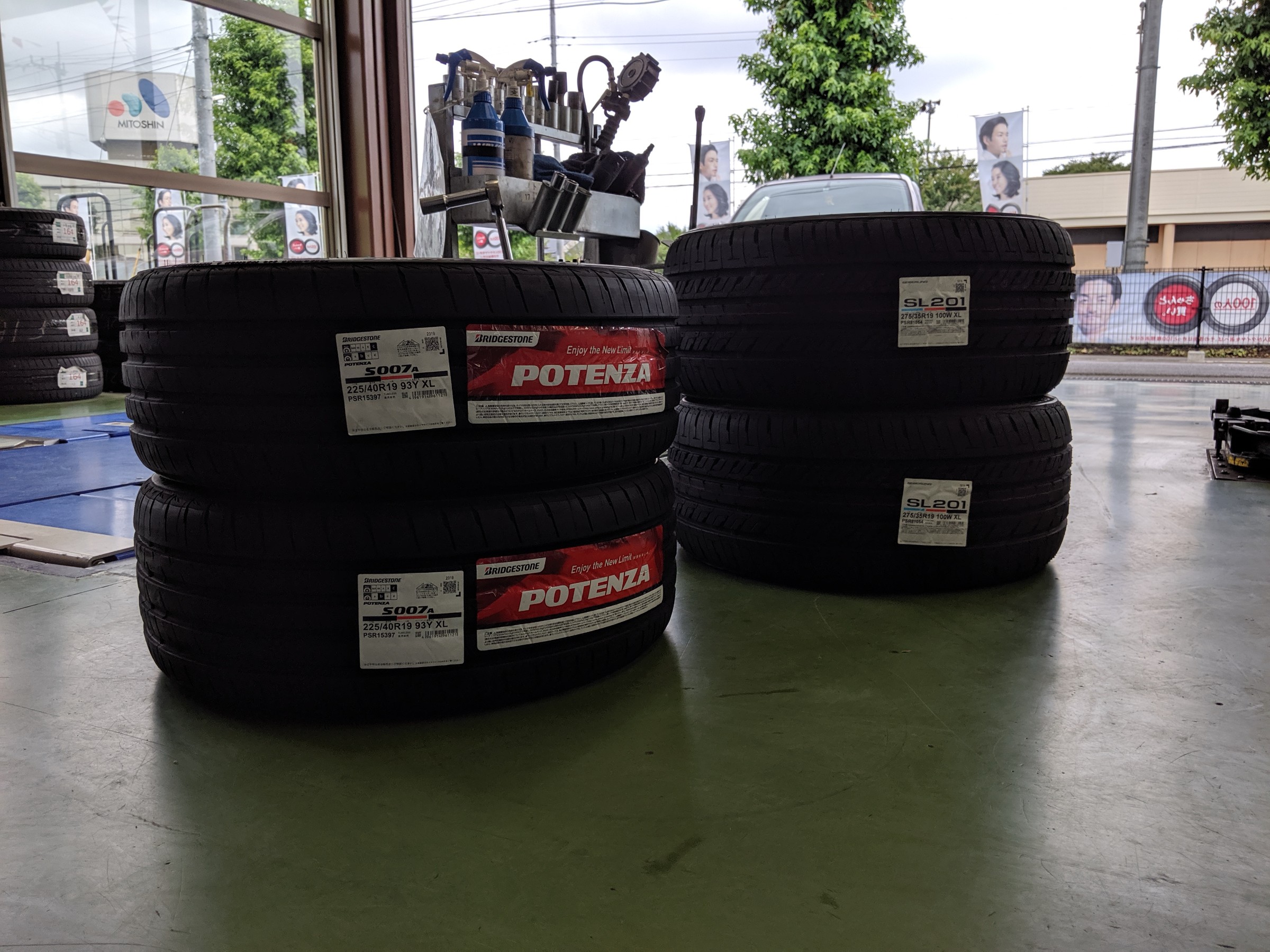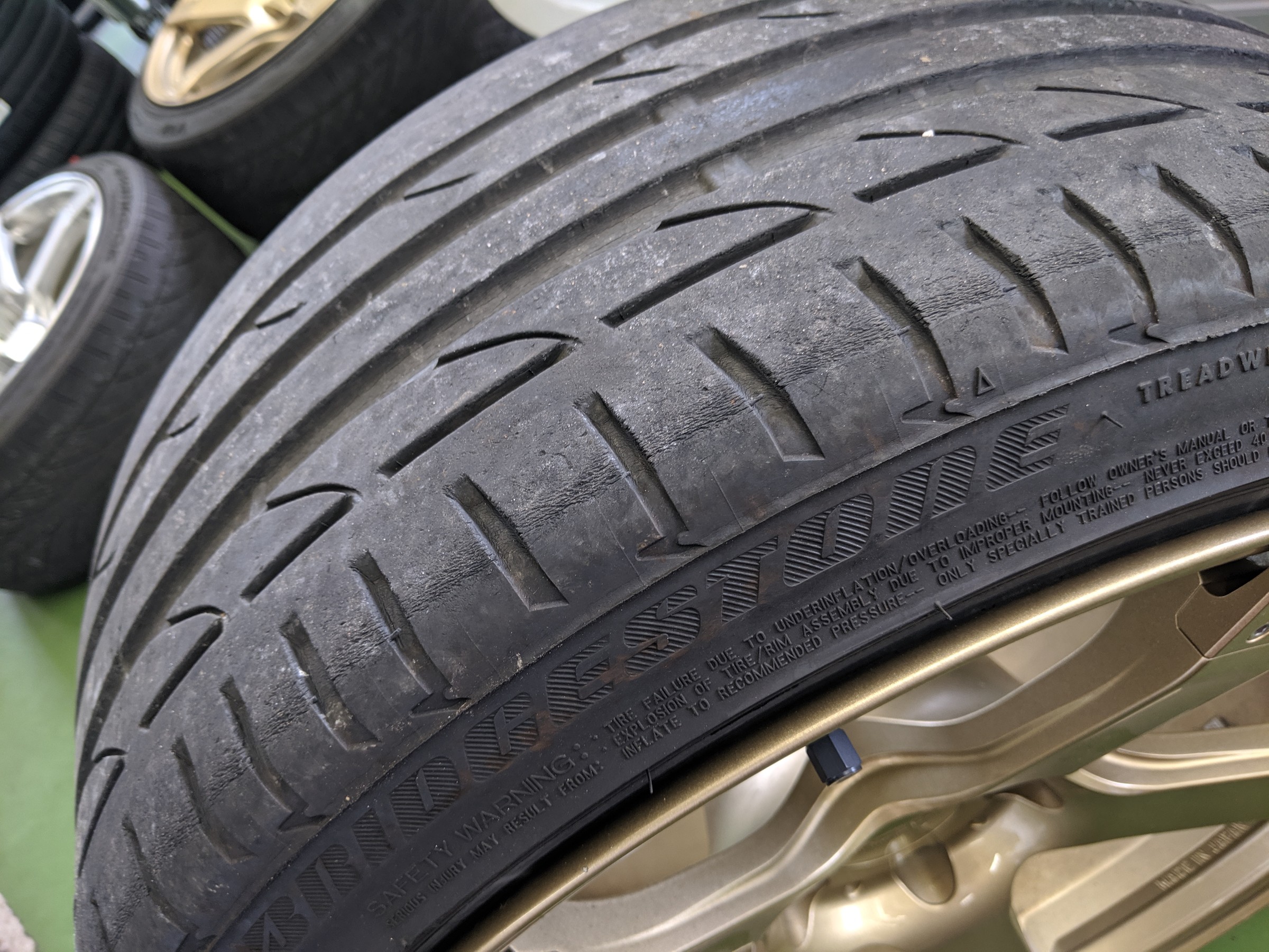 僕のスカイラインは前後でタイヤサイズが異なります。前輪は225/40R19のポテンザS007A、後輪は275/35R19のセイバーリングSL201というタイヤです。