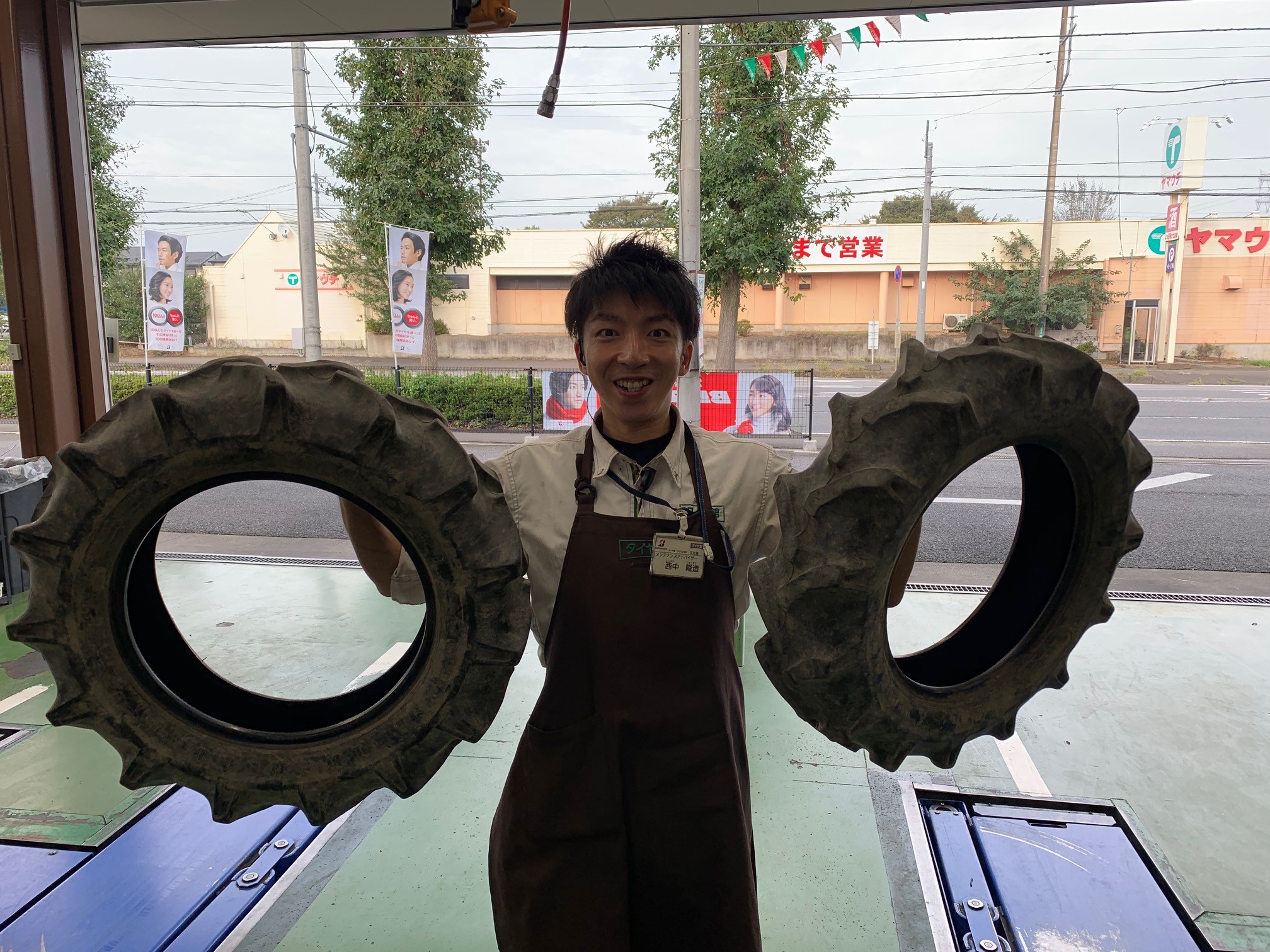 珍しいタイヤ!! ポスト 2019年10月9日 こんにちは~とのおかです!! 本日珍しいタイヤ交換があったので写真に収めてしまいました(^^)/ 農耕用の車両のタイヤです!! タイヤがゴツゴツしてますねΣ(゚Д゚) 畑を走るのでこれだけ凹凸が無いと滑って走れないからですね!! 中にはこんな感じにチューブも入っているのでおもーい物を積んだりも出来ます! こういったタイヤ交換も作業出来ますのでお困りの方がいらしたら一度ご連絡下さい!! 担当:殿岡