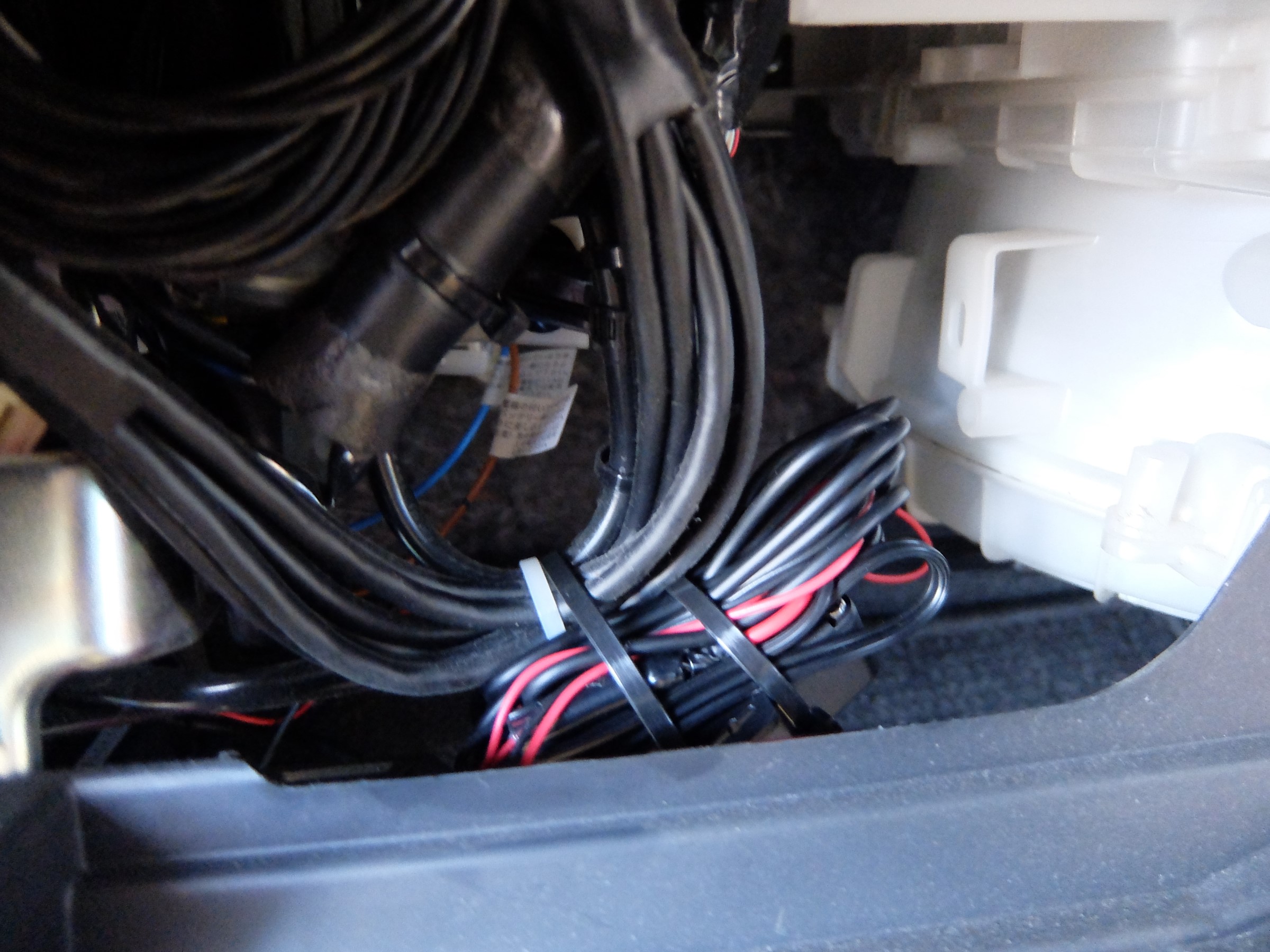 駐車監視の電源ユニットは後からでも調整できるようにあまり邪魔にならない所に取付けていきます。