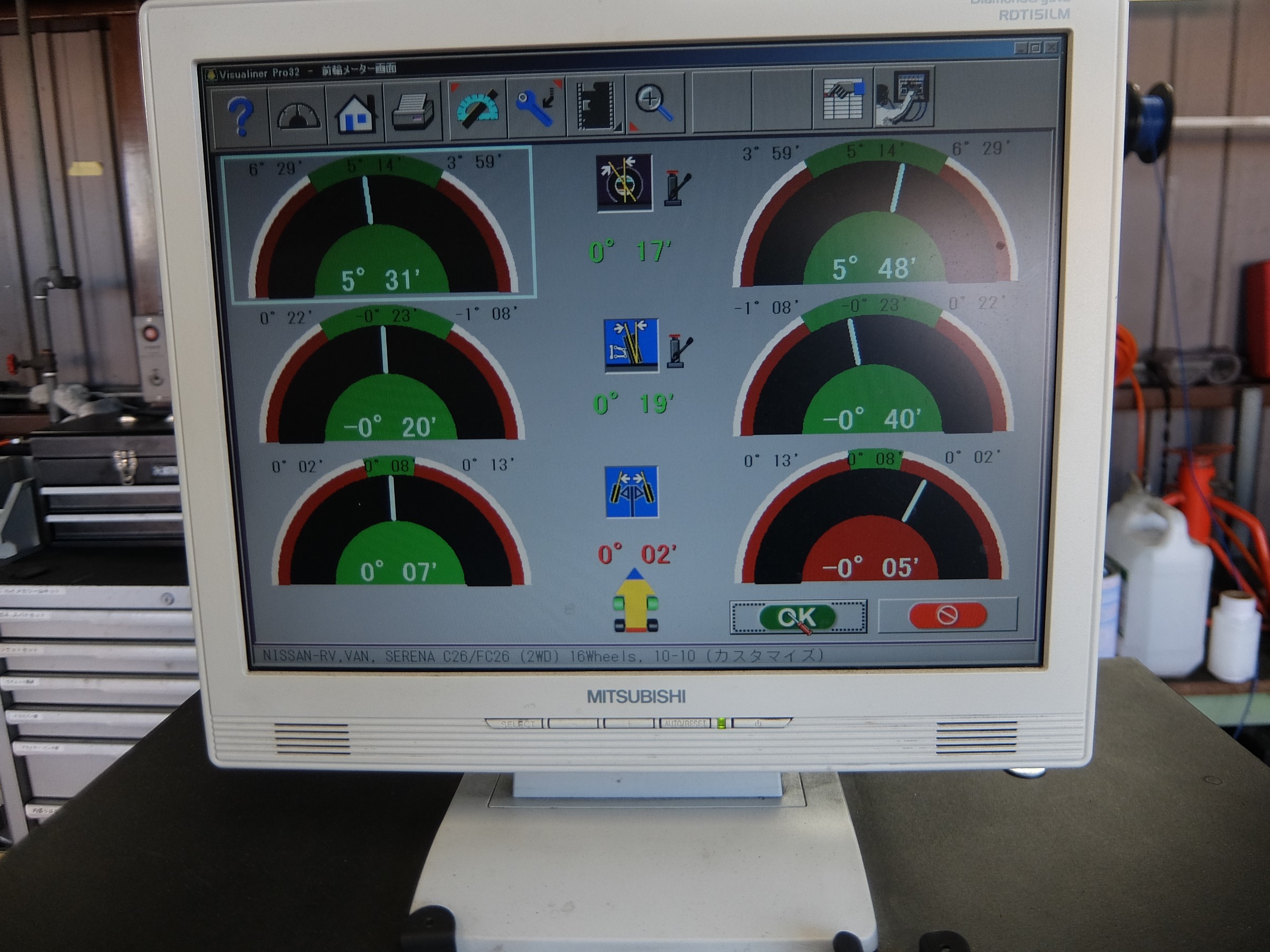 【ニッサン・セレナ・FC26】アライメント調整 ポスト 2019年10月14日 みなさん、こんにちは! 諸岡です!! 本日ご紹介するお車はこちらになります。 セレナ・アライメント調整です! アライメントは、徐々にズレてきてしまいます。 ズレが大きくなると、タイヤが偏った減り方をしてしまったり、タイヤの性能をフルに発揮することが出来なくなってしまいます!! そのような事が起こらない為にも、定期的な点検が必要です。 ぜひ気になる方、ご来店お待ちしております! カテゴリ:タイヤ関連 担当:諸岡