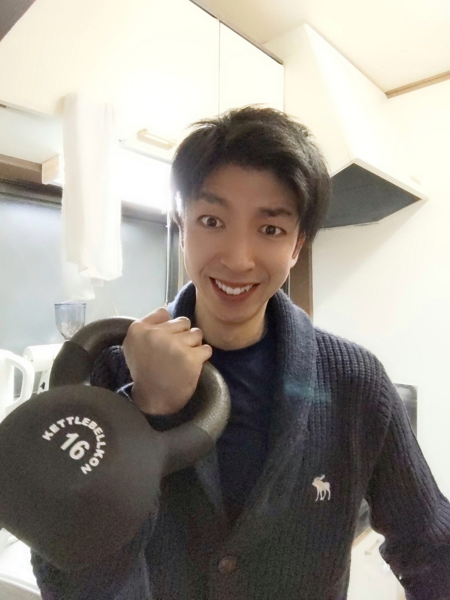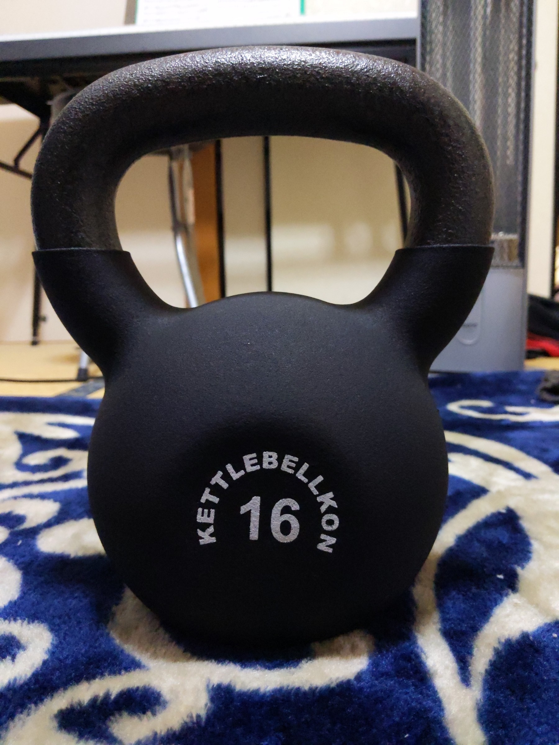 16kgのケトルベルです!ダンベルと似ていますが、ヤカンのような形が特徴の筋トレグッズです!