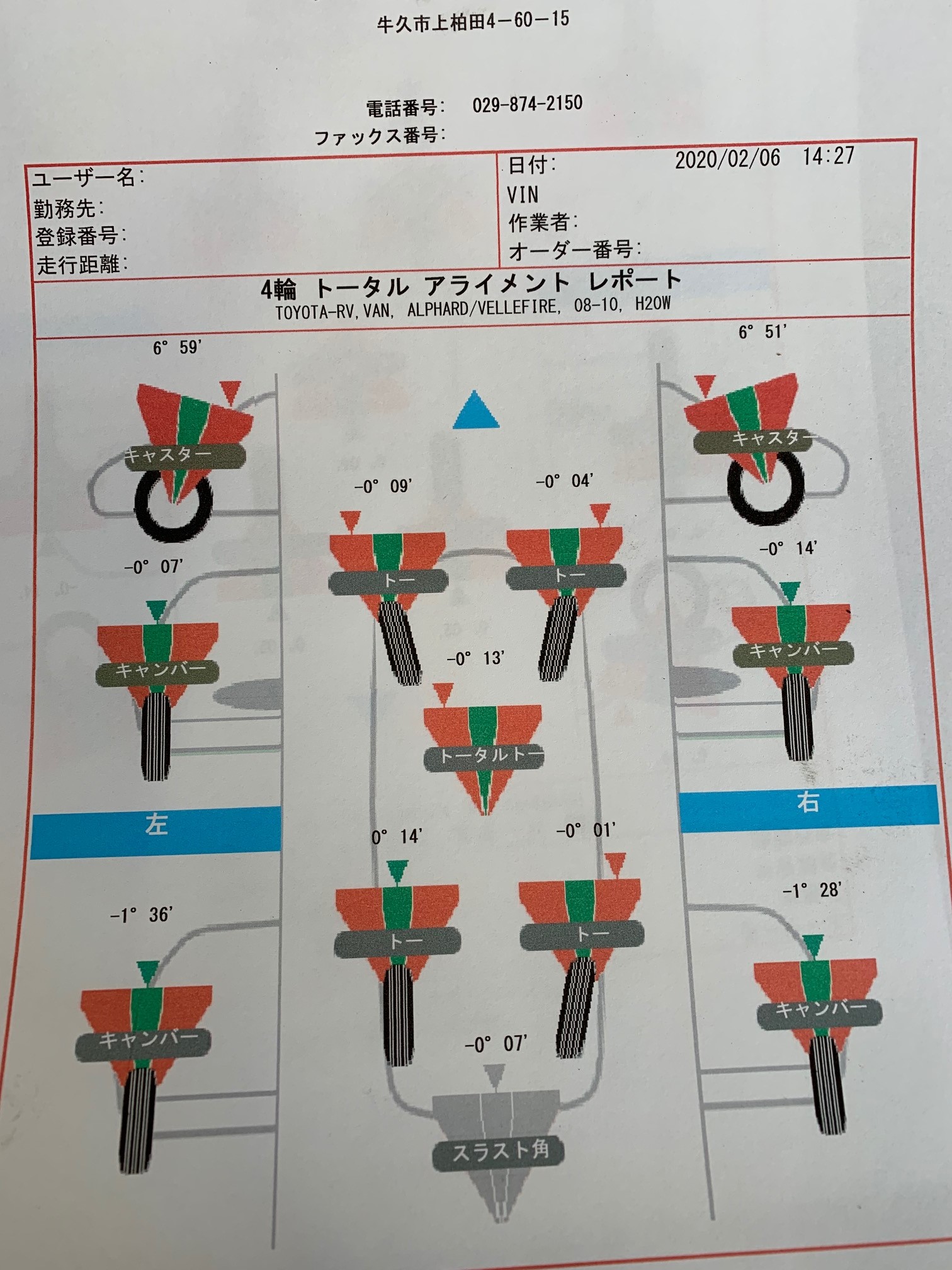 こんな感じでズレが出てしまっていたのでアルファードの基準値に調整し