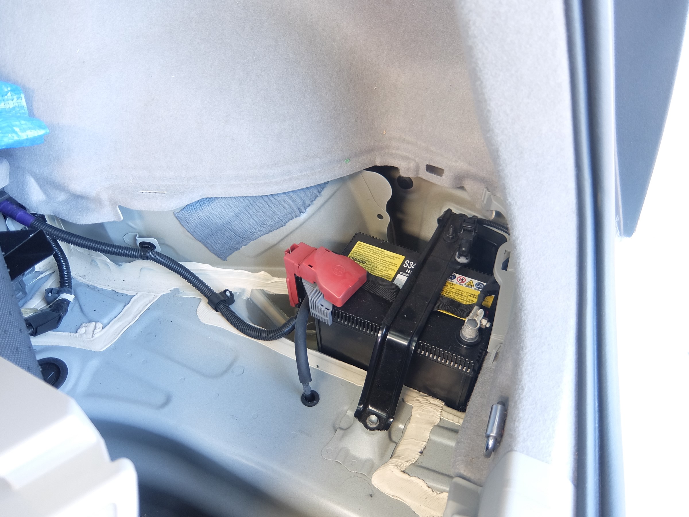 30系プリウスの補機バッテリーは、トランクルームの右下にあります。