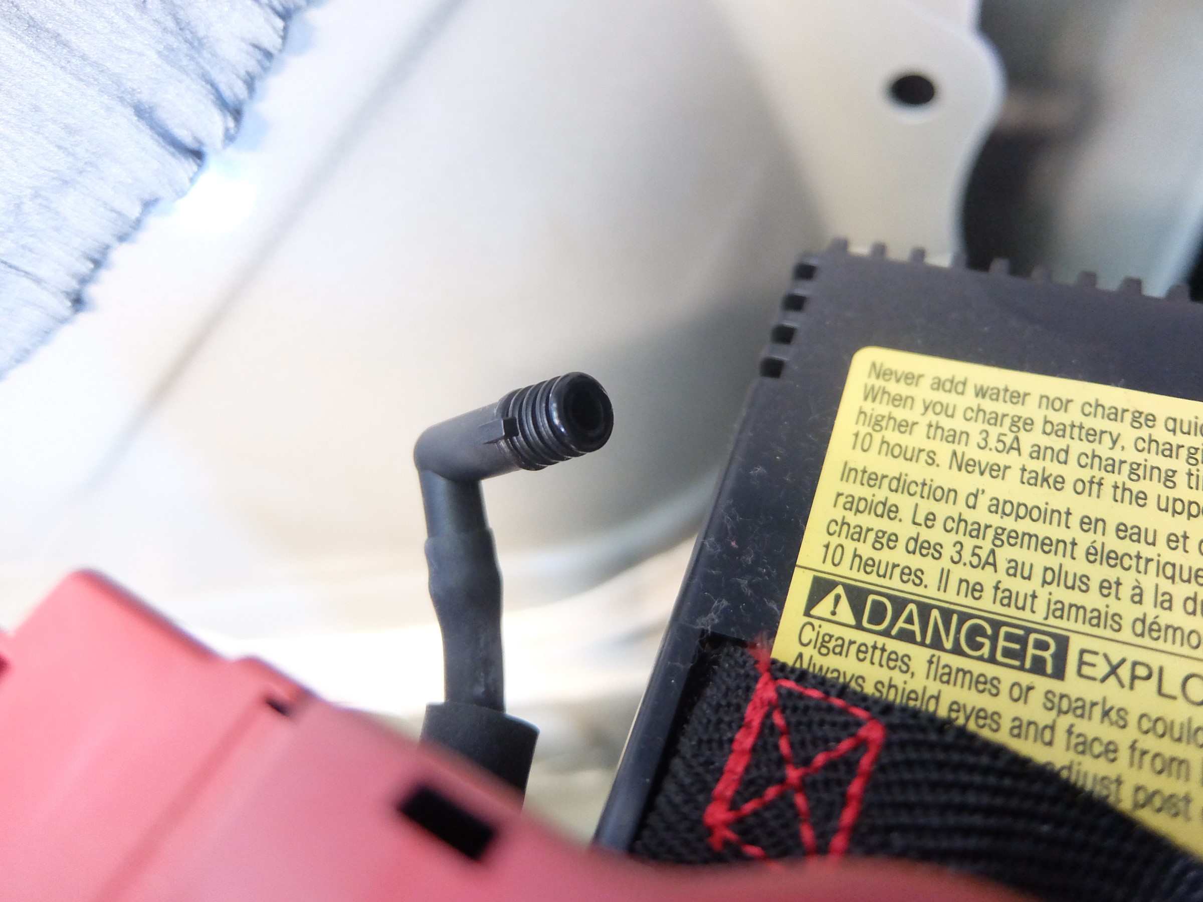 交換前に必ずこのホースを抜き、新しいバッテリーに差し込むことを忘れてはいけません。