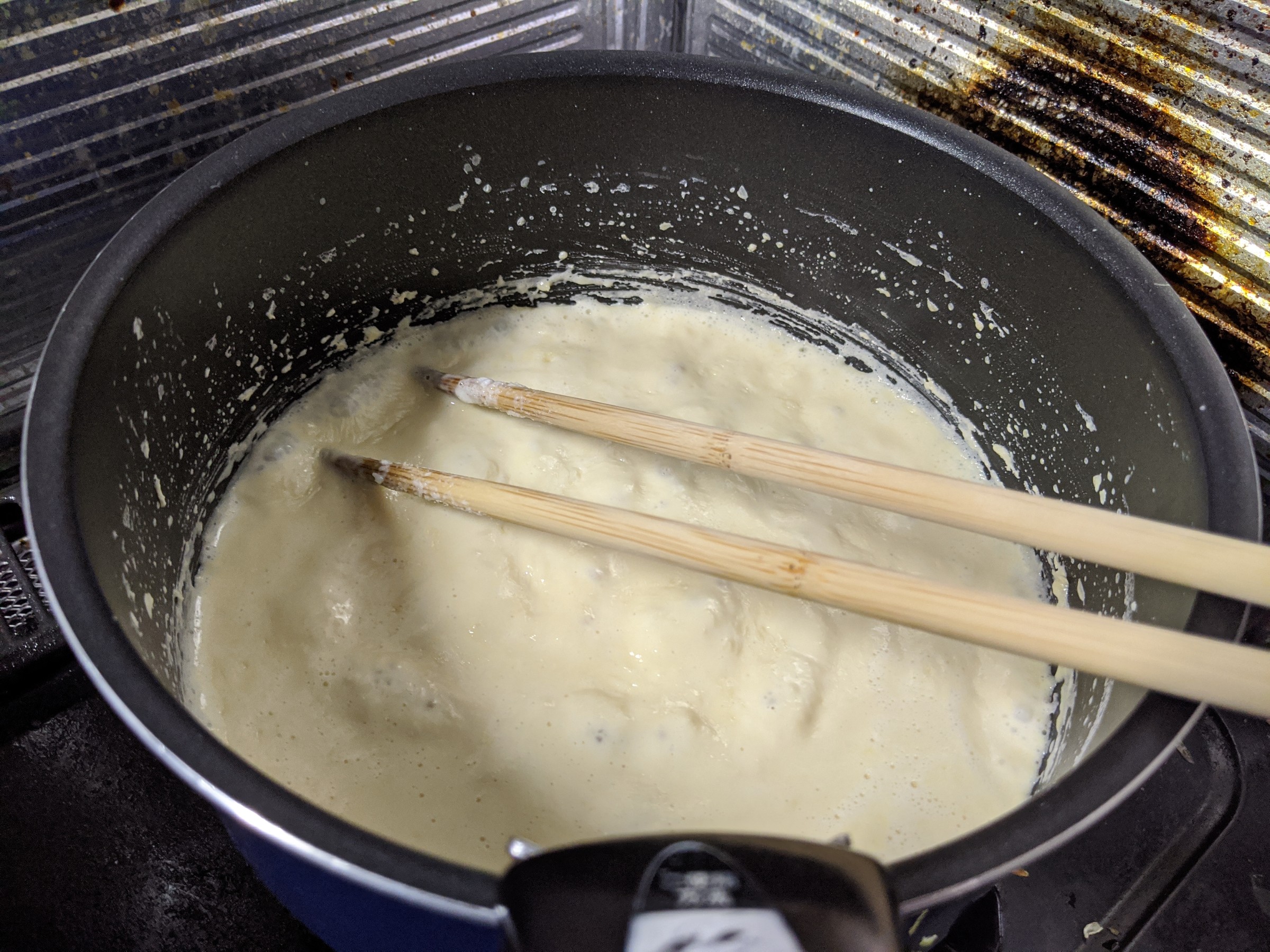 作り方はとてもシンプルで、牛乳をただ混ぜながらひたすら煮込み続けるというものです。