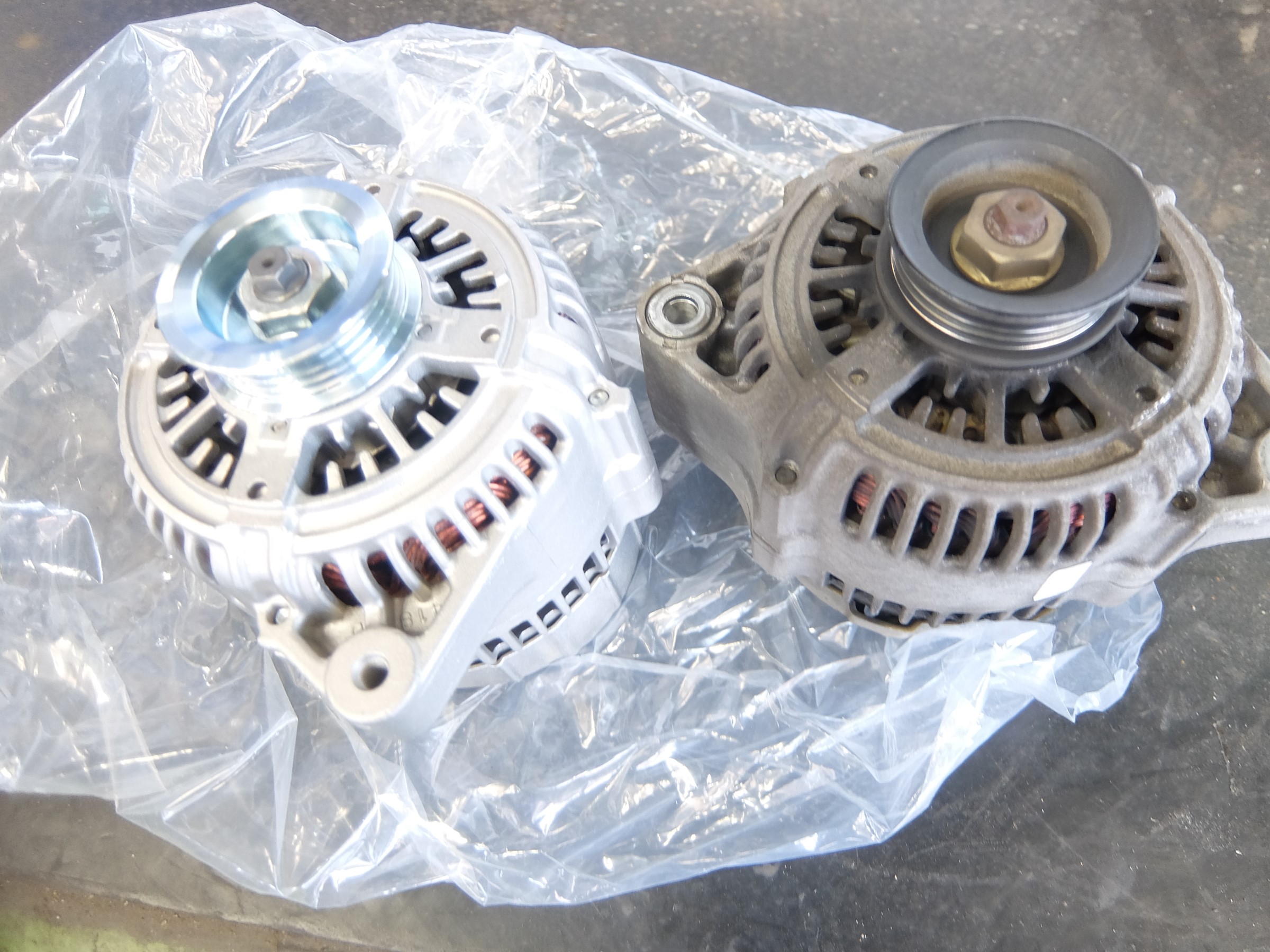 右が古いほうで左がリビルト部品になります。一目瞭然ですね。