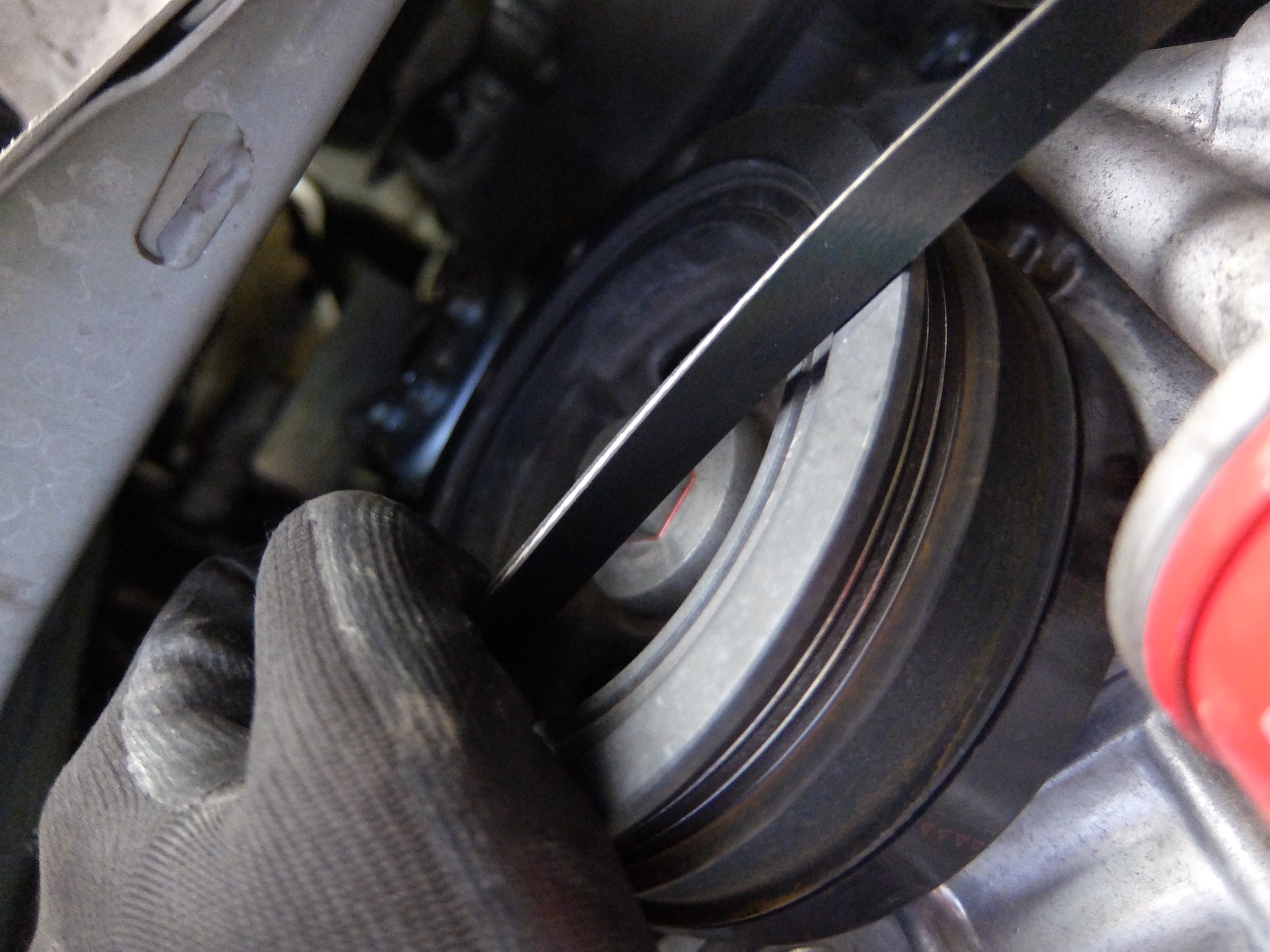 プーリーのボルトを回さば、きれいにベルトがはまります!