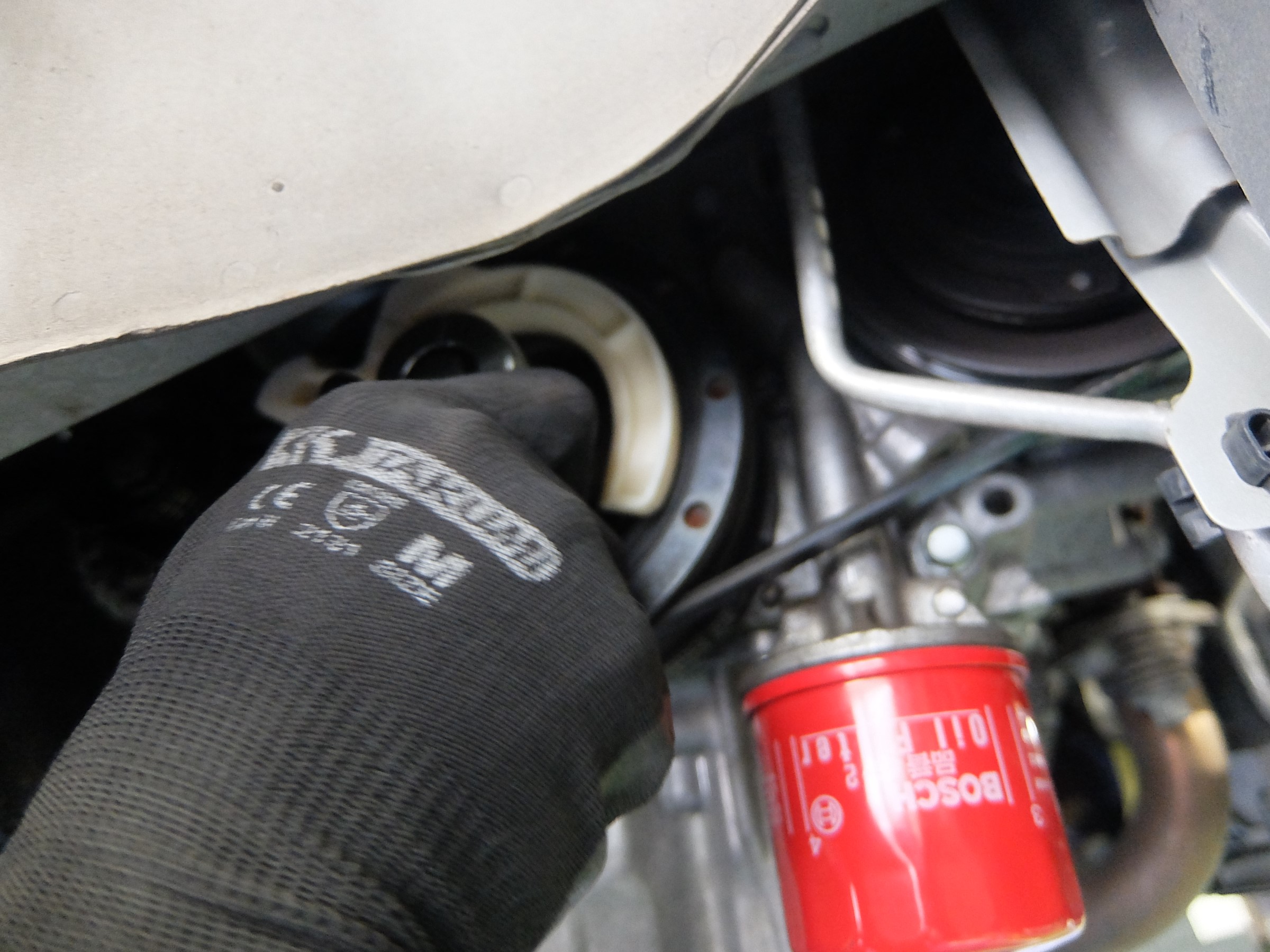 右前のタイヤを外し、その奥にアクセスします。