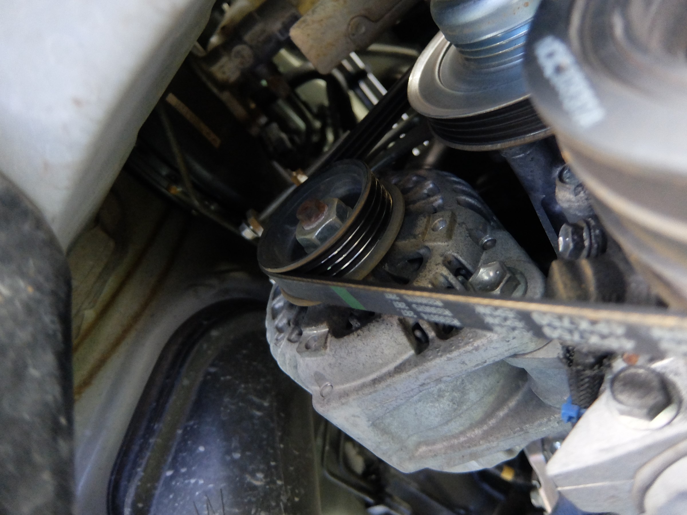 オルタネーターは本体を動かして緩めてベルトをかければOKですが、問題はエアコンベルトです。