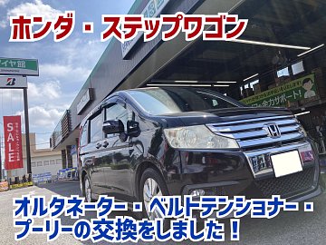 いつも当店のWEBを御覧いただきありがとうございます! タイヤ館うしく上柏田店 担当:隅内です。 今回は、常連のY様がお乗りのステップワゴンをお預かりしました。 作業内容は、「オルタネーター・ファンベルト・ベルトテンショナー・プーリー交換」となります。 ご紹介するお車【ホンダ・ステップ...