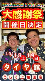 【タイヤ館うしく上柏田】10月18日・19日開催!大感謝祭のお知らせ!