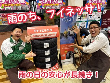 どうもタイヤ館うしく上柏田店の志和です! 今年2月から新登場したフィネッサ大好評販売中です! タイヤに悩んだらコレ!! 是非ご検討よろしくお願いします! お待ちしております!