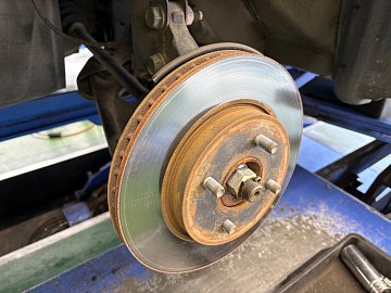 皆さんこんにちは!整備担当の隅内です。 今回ご紹介するのは、O様がお乗りの日産・ノート(E12)。 新品タイヤ交換でのご入庫だったのですが、その際に異常を発見。 左前タイヤの回転軸部分、ハブベアリングに大きなガタつきが起きていました。 このまま走行するとタイヤが路面に正しく接地できず...