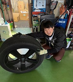 こんにちは! 写真だとわかりづらいと思われますが、 あのでかい志和店長と変わらないくらいの大きさ! 今日は22インチのタイヤ交換させて頂きました! 高インチでもお任せください!