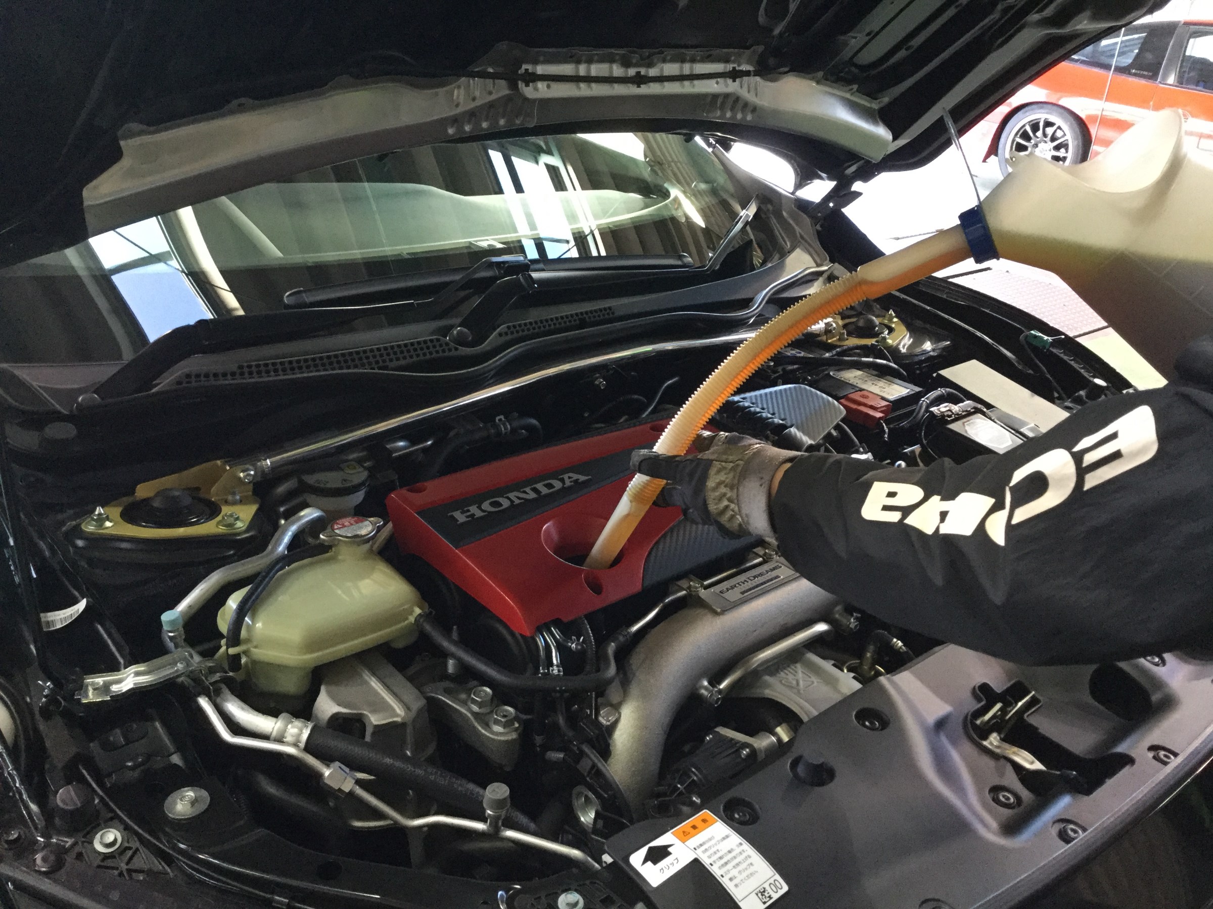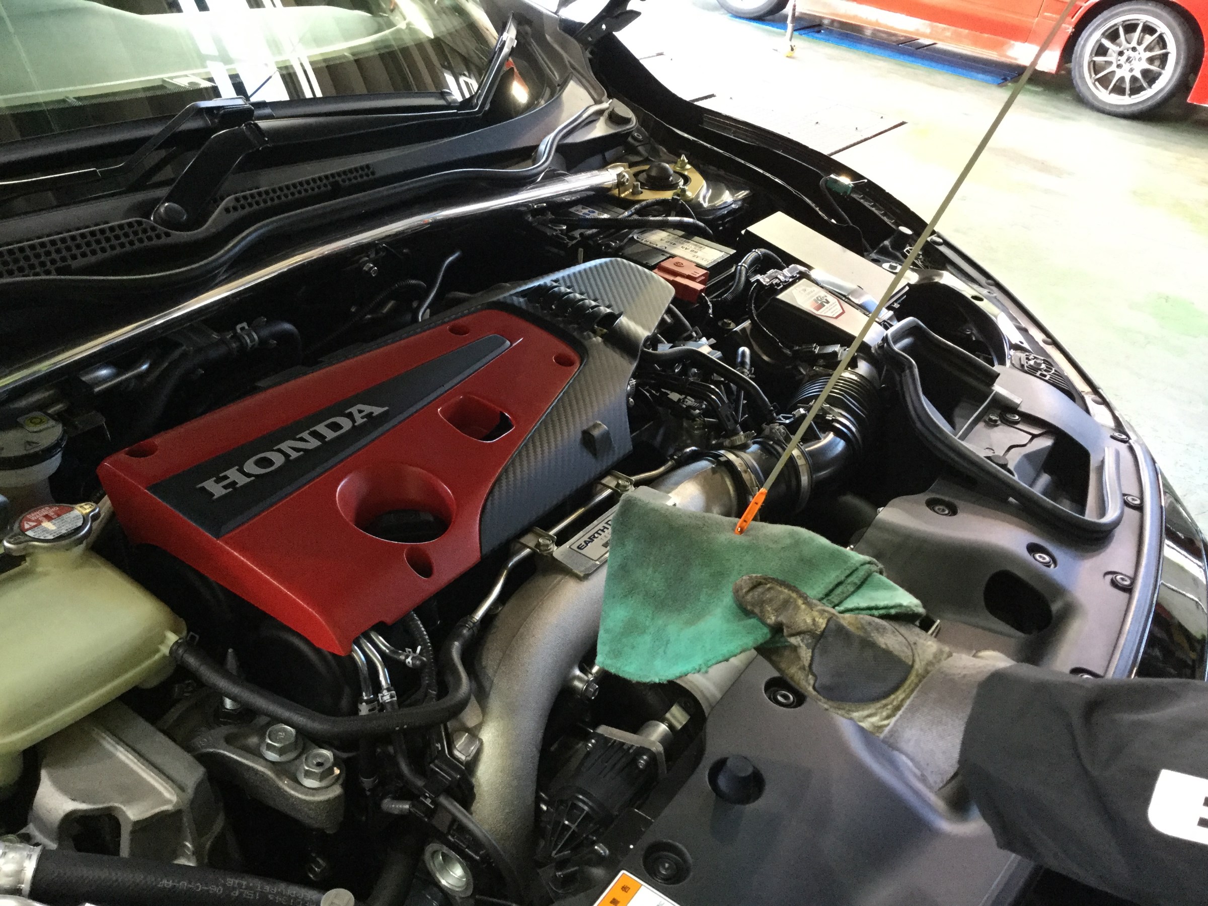 本日は、現行シビックタイプRのエンジンオイル交換の様子を