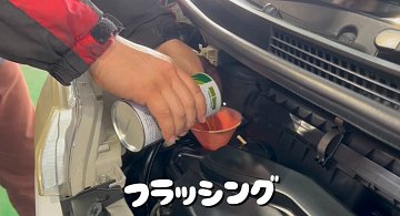 エンジンオイル交換前に、フラッシング(内部洗浄)作業を行いました