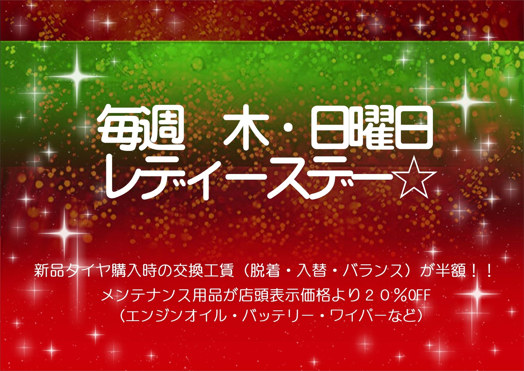 毎週 木・日はレディースデーです