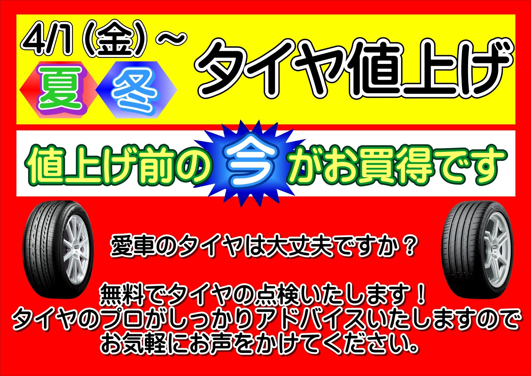 <重要なお知らせ> 4月よりタイヤの価格が上がります。