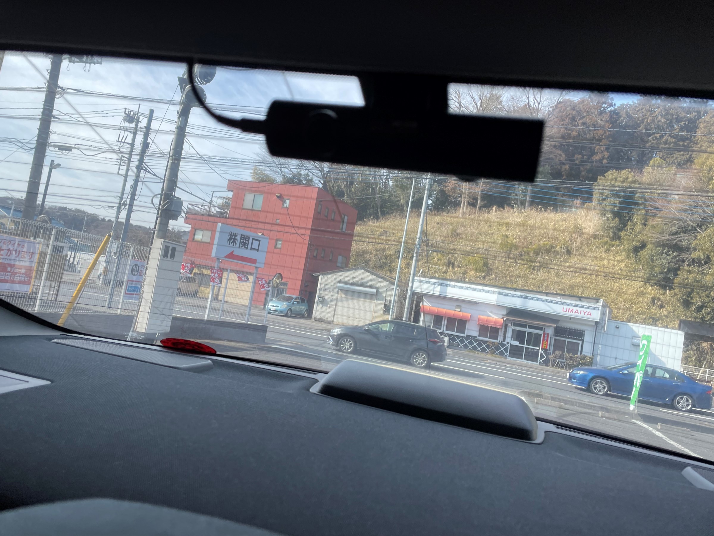 お客様に運転席に座っていただき、視界の邪魔にならない位置に取付。