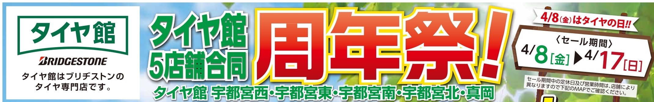 只今タイヤ館5店舗合同周年祭を開催中です!