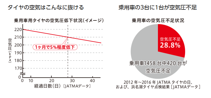 日常の空気圧点検の回数が減ったり、空気圧不足で起こる燃費悪化や
