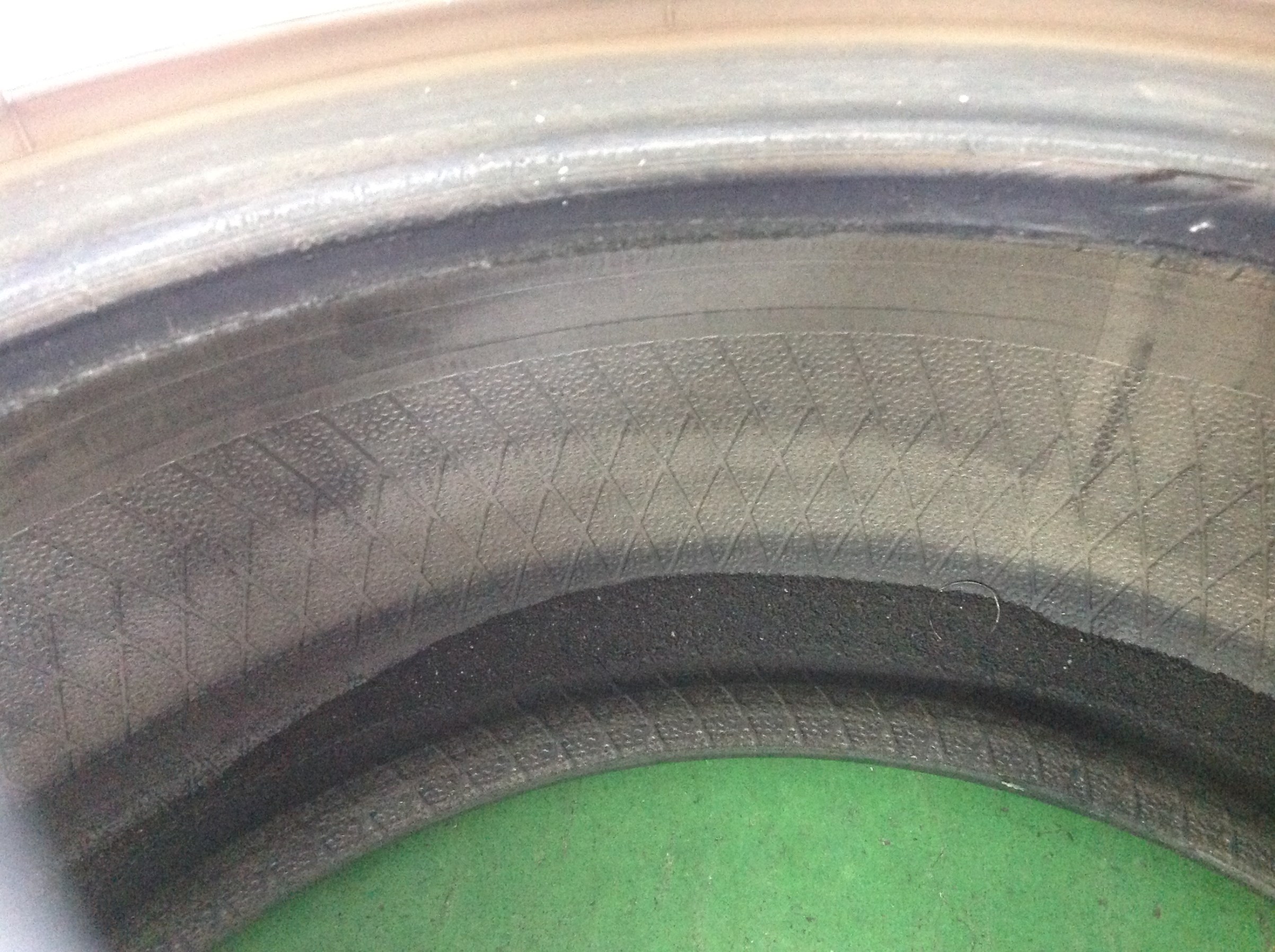 さらにタイヤの中を見てみるとタイヤの削れた粉がたっぷりありました。